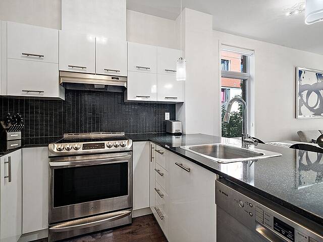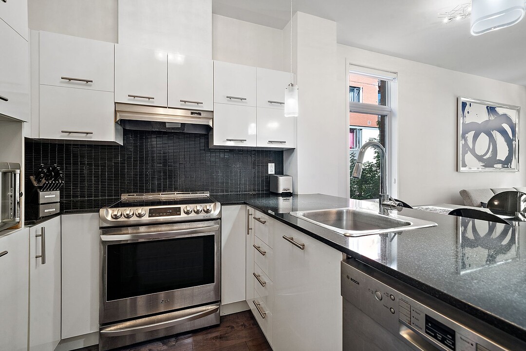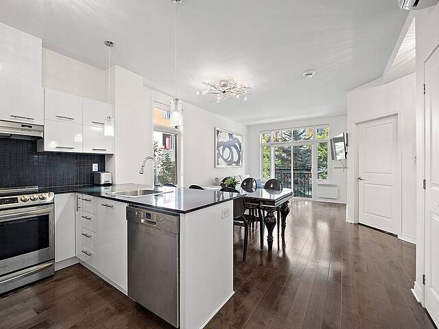 - Cuisine fonctionnelle maximisée avec espace de rangement - Salon, salle à manger et espace de vie à aire ouverte, lumineux et convivial - Espaces principaux aménagés dans un style minimaliste, alliant élégance et simplicité - Chambre principale de belle dimension - Deuxième chambre pratique, idéale pour bureau ou invité - Salle de bain avec douche et bain séparés - 1 stationnement intérieur inclus - Cour intérieure offrant un cadre paisible et tranquille