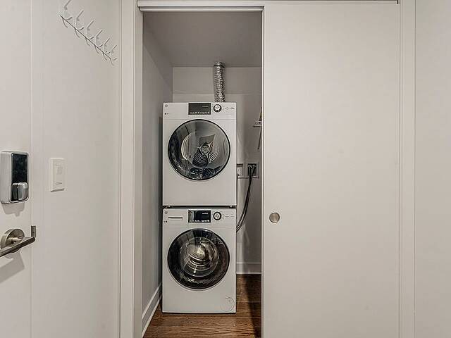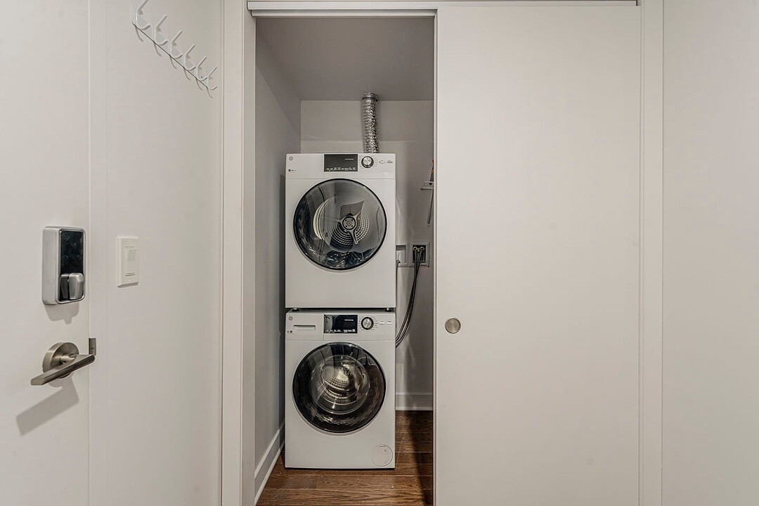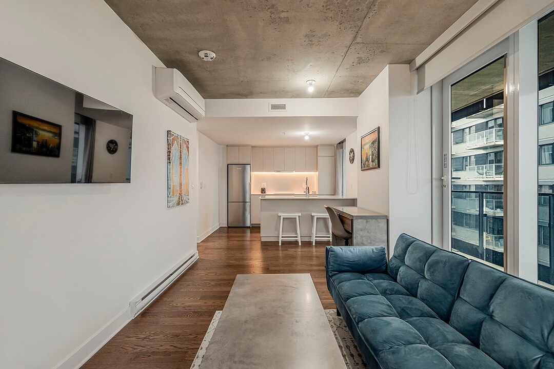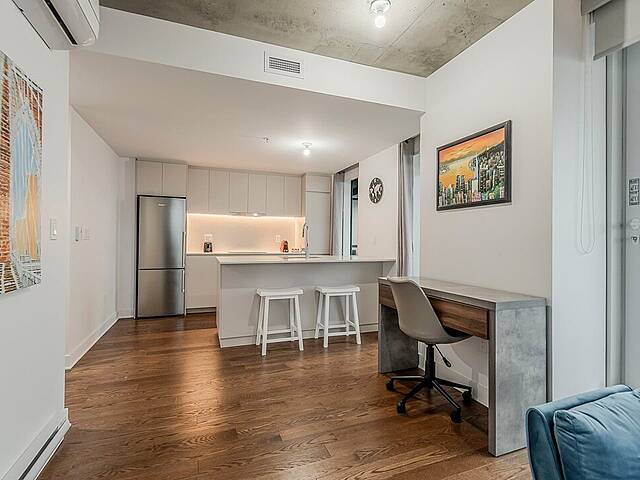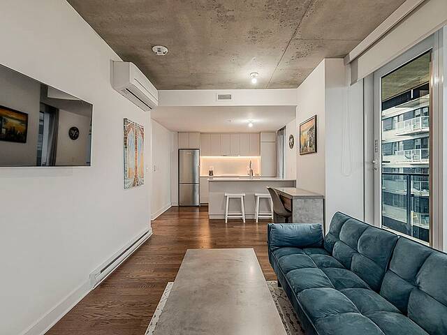 - Aire ouverte lumineuse incluant salon, salle à manger et cuisine - Cuisine fonctionnelle et maximisé - Chambre avec penderie (avec balcon) - Salle de bain avec bain-douche - Multiples grandes fenêtres inondant l'espace de lumière naturelle - Plafond en béton apparent dans le salon - Planchers en bois dans les espaces de vie - Deux balcons privés
