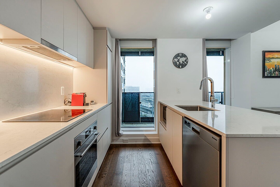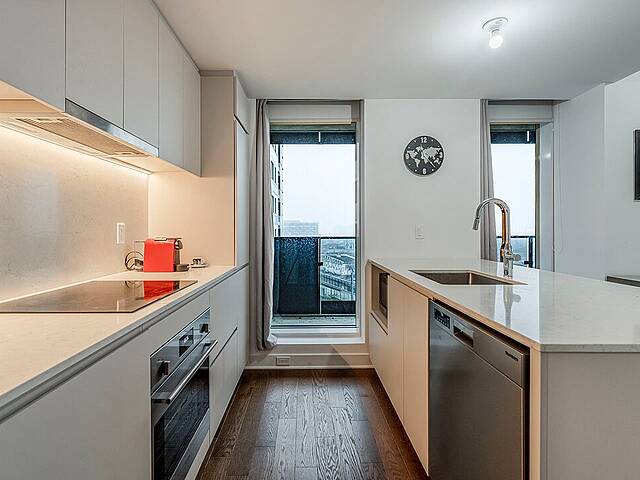 Appartement moderne à louer dans Griffintown. Cette unité de coin propose une chambre ainsi qu'un espace de vie à aire ouverte, baigné de lumière grâce à ses nombreuses fenêtres offrant une vue dégagée sur le bassin et la ville. Les hauts plafonds renforcent la sensation d'espace et de confort. 2 balcons privés viennent parfaire l'ensemble. L'immeuble Wellington sur le Bassin met à la disposition des résidents une piscine et une terrasse sur le toit, un chalet urbain ainsi qu'une salle d'entraînement. L'emplacement idéal, au coeur d'un quartier moderne, à proximité du centre-ville, du Vieux-Montréal, du REM et de la station Lucien-L'Allier.