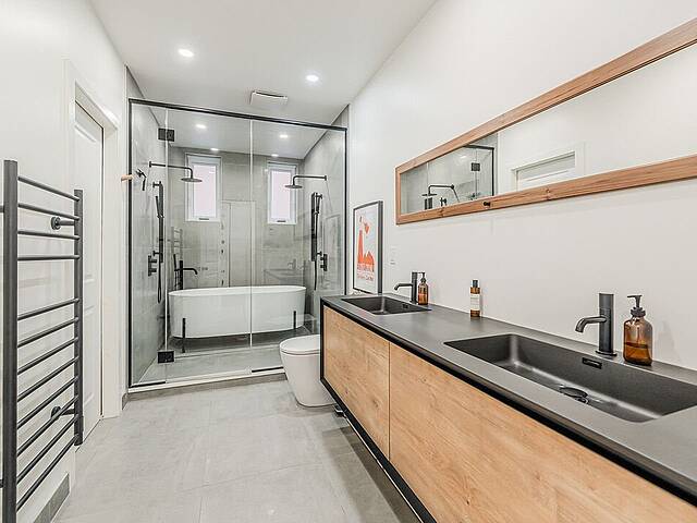 - Grande cuisine offrant beaucoup de rangement et un îlot avec coin-déjeuner - Salle à manger et salon attenants à la cuisine, créant un espace convivial - Accès à la cour grâce à une porte de côté et à une porte-fenêtre - Chambre principale avec meuble intégré et superbe salle de bain attenante - Deux autres chambres de belles dimensions - Une seconde salle de bain moderne avec douche vitrée - Grande terrasse pour profitez du soleil - Sous-sol aménagé comprenant l'espace buanderie et un vaste rangement - Deux espaces de stationnement dans l'allée