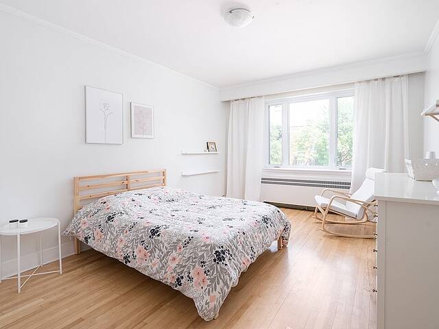 Appartement spacieux meublé à louer à Ville Mont-Royal, idéal pour les toute personne recherchant de l'espace. Ce logement comprend 4 chambres et 2 salles de bains, avec des pièces aérées et de belles dimensions offrant confort et luminosité. Un stationnement extérieur est inclus. Situé dans un secteur familial, calme et recherché, l'immeuble est entouré de magnifiques arbres matures et de nombreux parcs à proximité, parfait pour les activités en plein air. Le quartier offre également un accès pratique aux services locaux, aux commerces de proximité et aux écoles réputées. Transport en commun aisé et Grands axes routiers à proximité.