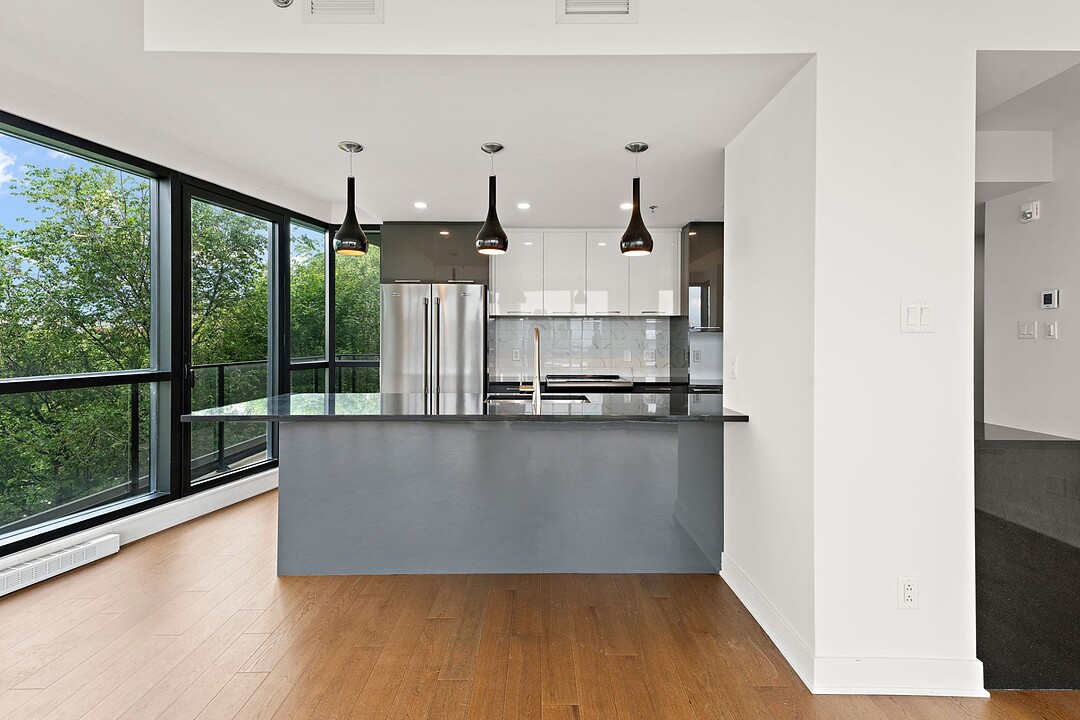 Découvrez cet appartement lumineux et moderne au coeur de la Petite-Italie, offrant une aire de vie spacieuse, une luminosité exceptionnelle et un confort optimisé grâce aux hauts plafonds et à l'immense fenestration.