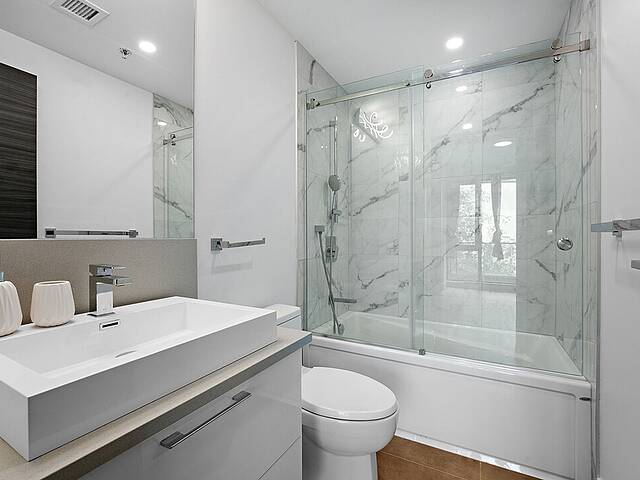 Ses atouts: - Aire de vie ouverte, vaste et baignée de lumière naturelle grâce aux grandes fenêtres pleine hauteur - Espace salon et salle à manger combinés, parfait pour recevoir famille et amis - Cuisine moderne et fonctionnelle avec îlot convivial, beaucoup de rangement et finitions soignées - Chambre principale spacieuse avec pièce-penderie et salle de bain attenante avec bain - Deuxième chambre fermée idéale comme bureau ou chambre d'invités - Deuxième salle de bain avec douche style contemporain - Deux balcons privés pour profiter de l'extérieur - Rangement privé inclus pour plus de commodité - Un stationnement intérieur