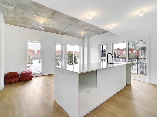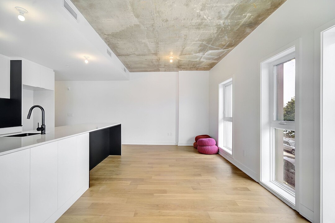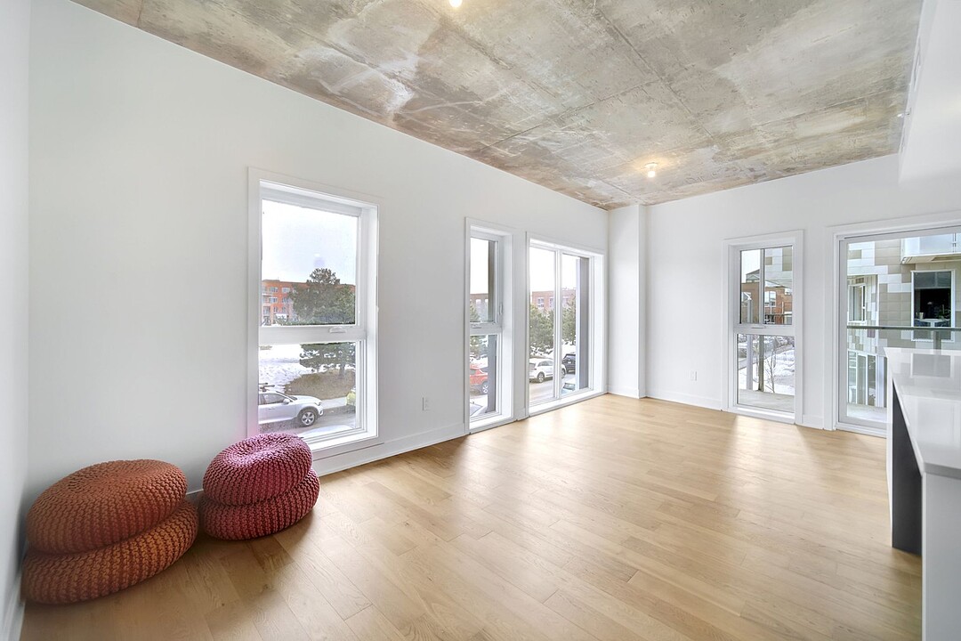 Appartement à louer à Rosemont dans le Shop Angus avec trois chambres à coucher et deux salles de bains. Contemporaine, cette unité de coin est logée au fabuleux projet Cité Angus II. L'écoquartier Angus, village urbain avec un milieu de vie dynamique.