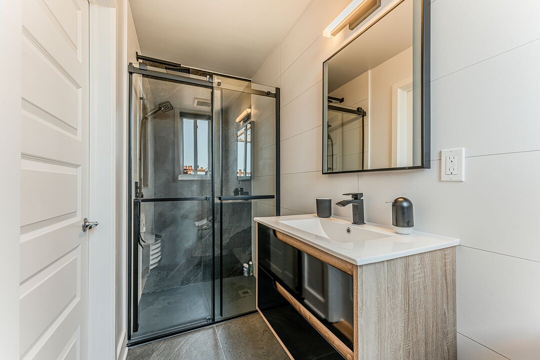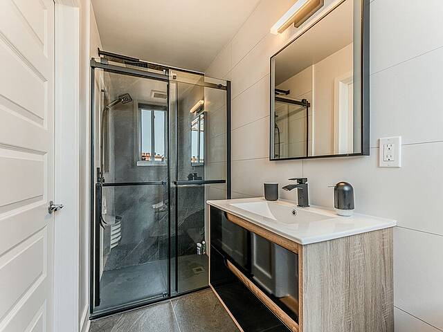 - Trois chambres confortables, dont une située au 2e étage de l'appartement - Deux salles de bains fonctionnelles : l'une avec baignoire, l'autre avec douche indépendante et plancher chauffant à l'étage - Cuisine moderne et fonctionnelle, parfaite pour le quotidien - Salon chaleureux, idéal pour se détendre ou recevoir - Grande terrasse privée et balcon supplémentaire pour profiter de l'extérieur - Stationnement extérieur avec borne de recharge