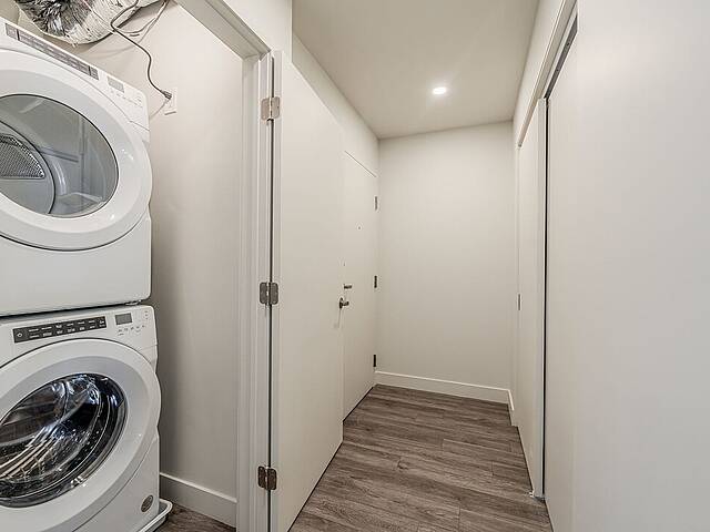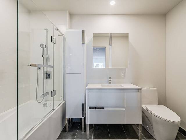 L'unité: - Salle à manger et salon à aire ouverte très lumineux avec plafond en béton - Cuisine avec îlot, espace optimisé et électroménagers en inox - Trois chambres avec penderies doubles - Salle de bain avec bain/douche - Salle d'eau - Double penderie dans le vestibule - Laveuse et sécheuse dissimulées dans une penderie - Grand balcon privé en « L » - Services inclus: le wifi haute vitesse et tous les coûts d'électricité, de chauffage et de climatisation sont inclus à votre loyer - Toiles de fenêtres incluses - Un espace rangement pour vélos - Stationnement intérieur (avec frais supplémentaire de 175$/mois) et accès aux bornes de recharge