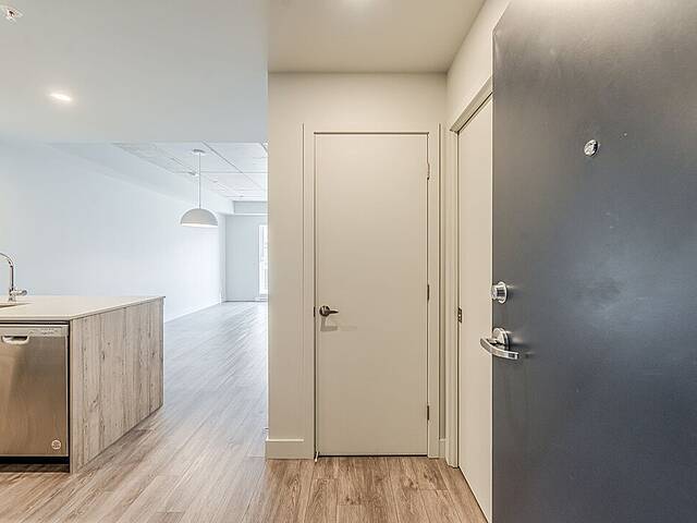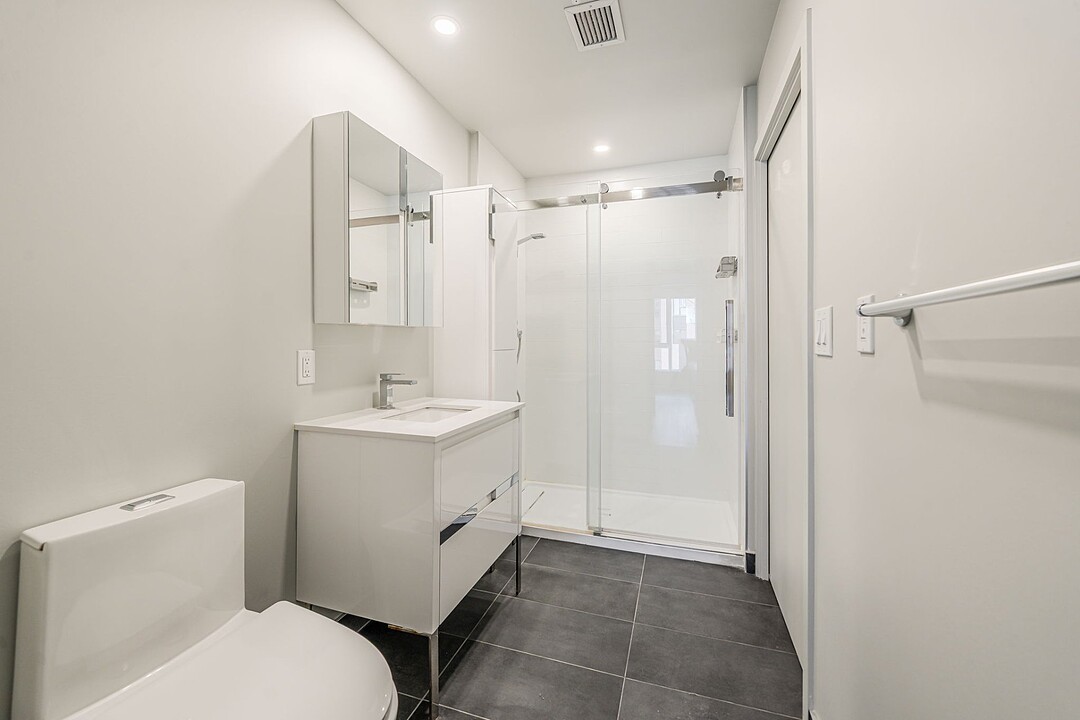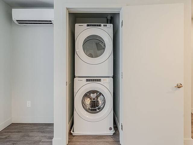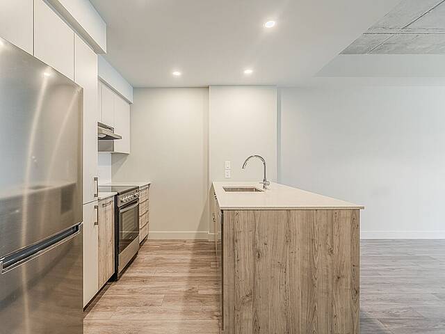 L'unité: - Salle à manger et salon à aire ouverte très lumineux avec plafond en béton - Cuisine avec îlot, espace optimisé et électroménagers en inox - Chambre principale avec walk-in - Deuxième chambre avec penderie double - Penderie dans le vestibule - Laveuse et sécheuse dissimulées dans une penderie - Balcon privé - Services inclus: le wifi haute vitesse et tous les coûts d'électricité, de chauffage et de climatisation sont inclus à votre loyer - Toiles de fenêtres - Un espace rangement pour vélos - Stationnement intérieur (avec frais supplémentaire de 175$/mois) et accès aux bornes de recharge