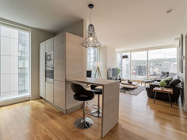 Appartement meublé à louer au Centre-Ville de Montréal. Cette unité de coin offre deux chambres, deux salles de bains, une vaste fenestration avec vue sur la ville et la montagne, et un stationnement intérieur. Situé au prestigieux Rocabella, vous bénéficierez de services prisés comme une piscine, une salle de sport, un sauna, un spa, ainsi qu'une terrasse sur le toit. À quelques pas de la station de métro Lucien-L'Allier, ainsi que des meilleures adresses et quartiers animés de Montréal.