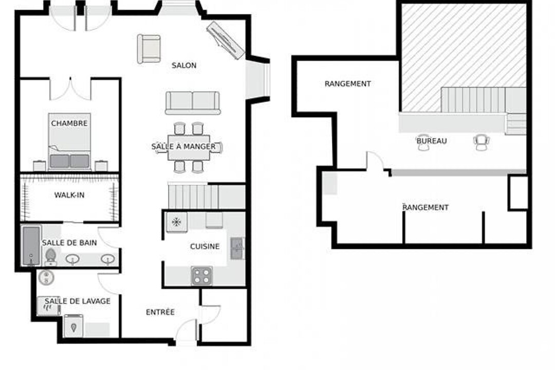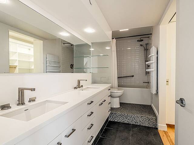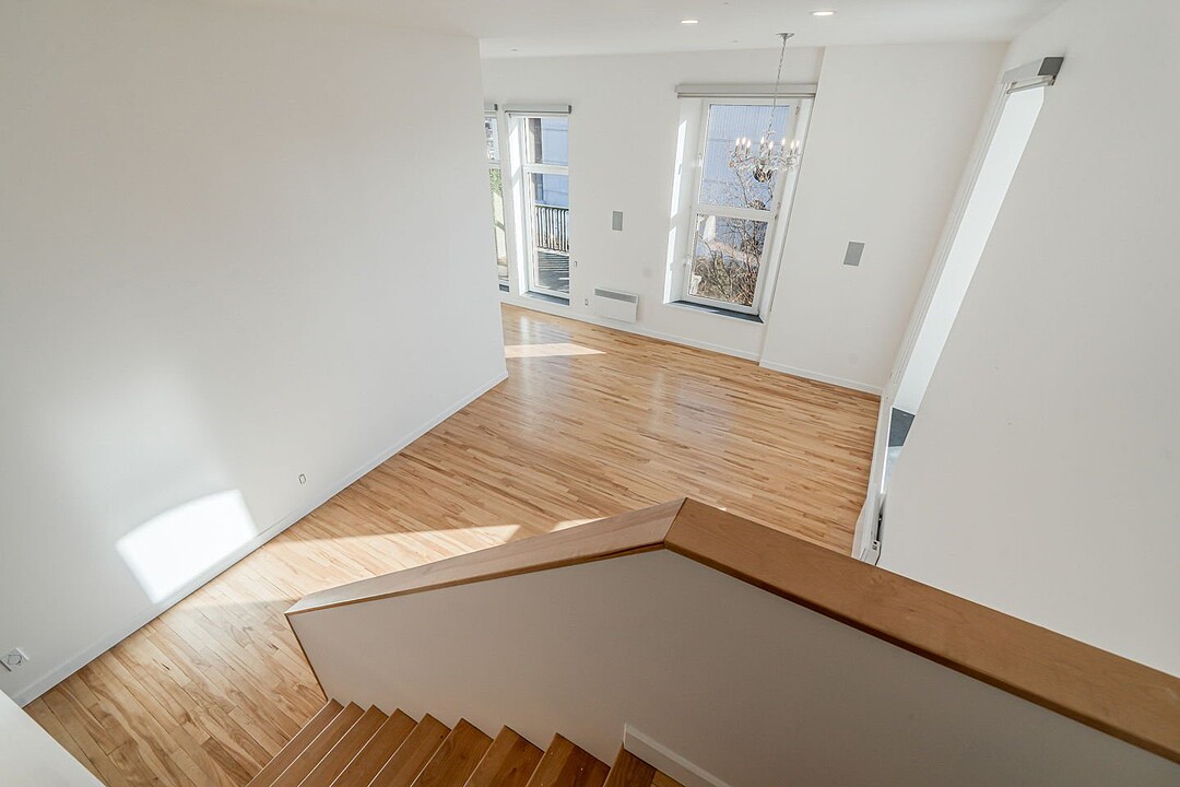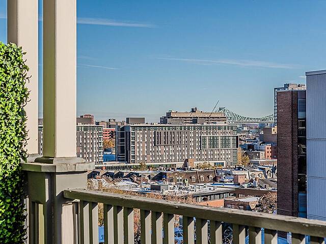 - Espace à aire ouverte : salon et salle à manger se fondent harmonieusement, avec de hauts plafonds assurant une belle aération et une sensation d'espace, idéal pour recevoir ou profiter d'un moment paisible - Cuisine fermée et fonctionnelle, offrant généreusement comptoirs et espaces de rangement - Chambre à coucher : confortable et fermée par des portes françaises, idéale pour un repos paisible - Salle de bain : élégante et fonctionnelle, dotée d'une grande penderie attenante offrant un rangement pratique et généreux. - Mezzanine spacieuse : elle offre des meubles intégrés conçus pour un bureau, un coin lecture ou un espace créatif, et comprend plusieurs armoires et placards intégrés pour répondre à tous vos besoins - Vaste espace de rangement dans la partie fermée de la mezzanine - Fenestration abondante : de grandes fenêtres baignent l'appartement de lumière naturelle, apportant chaleur et clarté - Vaste terrasse privée offrant une magnifique vue sur la ville et sur le pont Jacques-Cartier - Hauts plafonds offrant une superbe sensation d'espace - Un stationnement intérieur inclus.