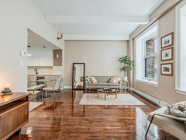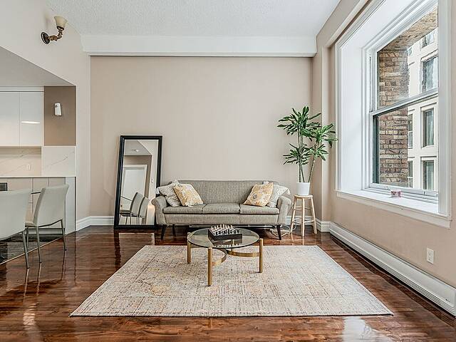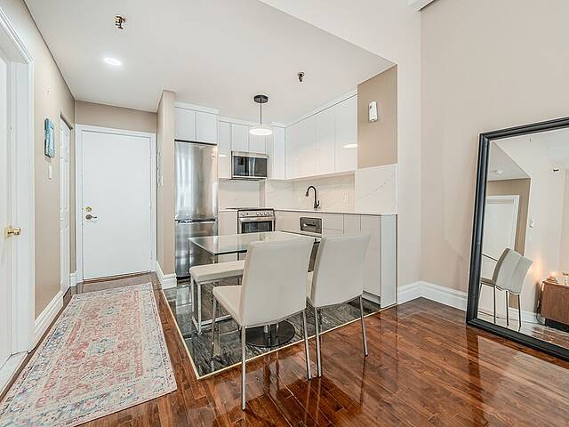 Splendide appartement meublé à louer dans le Vieux-Montréal. Récemment rénové, il offre une chambre fermée, une aire de vie principale à aire ouverte, une cuisine optimisée avec salle à manger ainsi qu'une salle de bain moderne. Ses hauts plafonds assurent une belle aération, tandis que les planchers de bois et les poutres apparentes créent une ambiance chaleureuse et lumineuse. Situé au coeur du Vieux-Montréal, vous profiterez du charme historique du quartier, de ses rues pittoresques, de ses cafés animés et de sa proximité avec le Vieux-Port. À quelques pas de la station de métro Place-d'Armes et près du Centre-Ville.