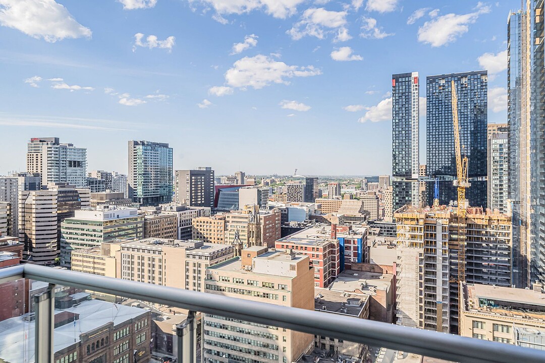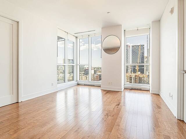 Magnifique condo en plein coeur du Centre-Ville de Montréal. La luminosité naturelle baigne l'espace de vie grâce aux fenêtres du sol au plafond, offrant une vue imprenable sur la ville.