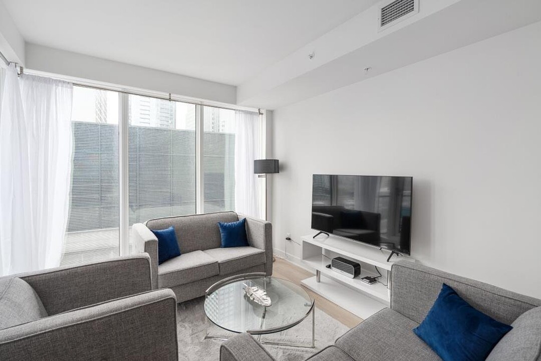 Découvrez cette unité meublée située au 18e étage de la Tour des Canadiens Phase 3 au Centre-Ville de Montréal :