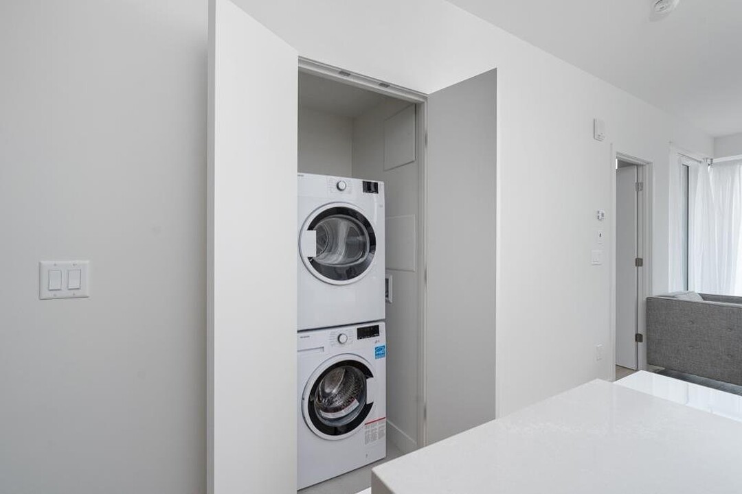 - Espace salon, salle à manger (den) et cuisine à aire ouverte - Une chambre fermée de bonne dimension - Salle de bain avec douche indépendante - Meubles et électroménagers inclus - Espace de rangement inclus