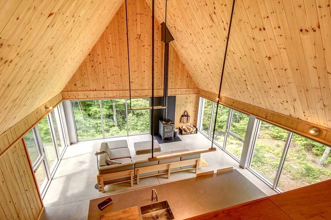 Construction de qualité : - Cuisine et mobilier sur mesure par À Hauteur d'Homme - Luminaires par Lambert & fils - Poêle à bois et cuisinière Esse, alliant esthétique et perfomance - Planchers chauffants avec thermostat - Revêtement extérieur en clin de cèdre de la compagnie Juste du Pin (garantie 50 ans) - Fenêtres surdimensionnées en aluminium, porte en acier et verre scellé par Fabelta - Toiture en tôle pincée MAC Métal - Quincaillerie Intermat - Robinetterie Riobel (compagnie québécoise) - Échangeur d'air et climatisation murale - Ventilateur POD - Serrure intelligente à clavier - Borne de recharge pour voiture électrique