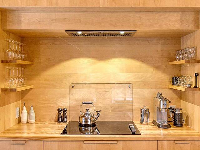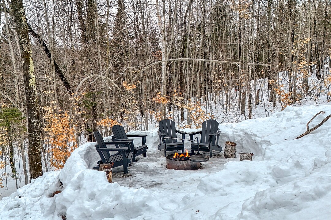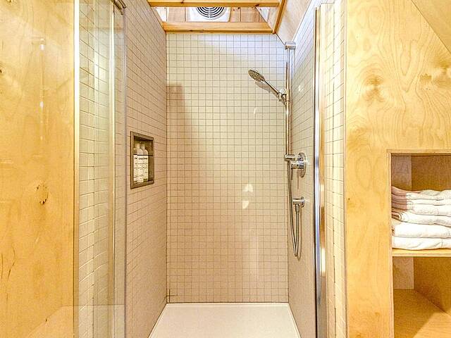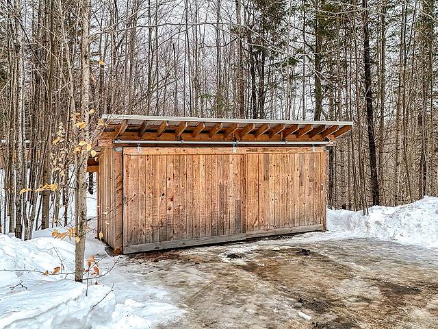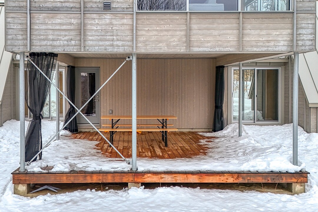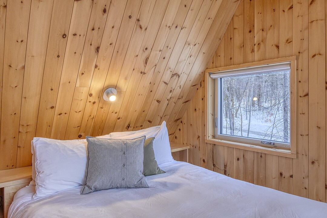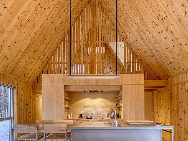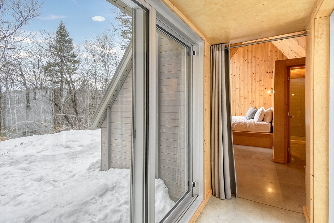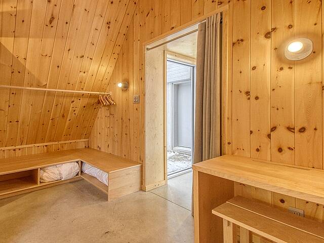 2e étage : - Spacieuse pièce de vie à aire ouverte, baignée de lumière naturelle et offrant une vue panoramique sur les montagnes et la nature environnante, avec très haut un plafond cathédrale. - Cuisine avec comptoir à déjeuner, grand espace de rangement et électroménagers de qualité - Salon avec foyer au bois à combustion lente - Salle d'eau - Salle de sauna vitrée, avec douche - Laveuse-sécheuse dissimulée dans une penderie