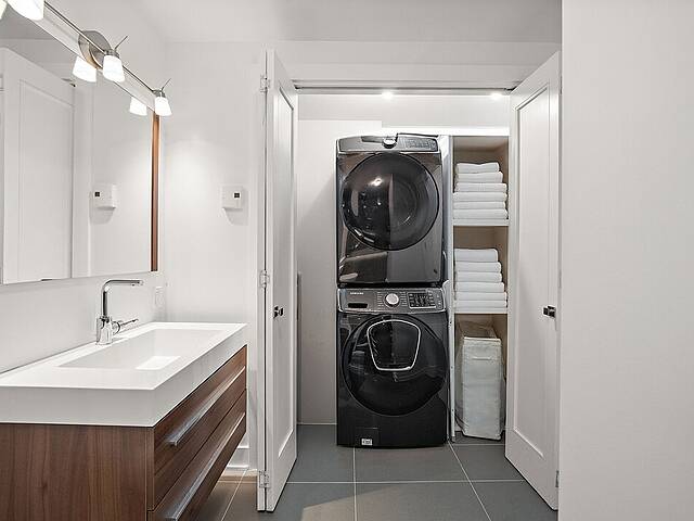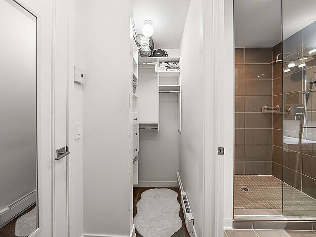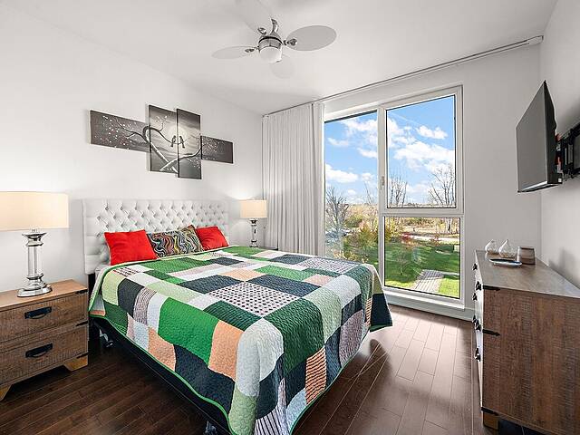 Ses atouts : - Cuisine contemporaine avec comptoir-lunch et rangements abondants, idéale pour cuisiner et recevoir - Aire ouverte conviviale regroupant salon, salle à manger et cuisine, offrant un espace chaleureux et lumineux - Boudoir fonctionnel, parfait pour un bureau à domicile ou un coin lecture cosy - Chambre principale spacieuse avec salle de bain attenante comprenant une douche à pluie vitrée et un généreux walk-in - Deuxième chambre lumineuse et bien proportionnée - Deuxième salle de bain élégante avec bain-douche moderne - Grand balcon privé, parfait pour se détendre ou profiter de l'extérieur - Hauts plafonds apportant aération et impression d'espace - Vaste fenestration inondant l'ensemble d'une lumière naturelle abondante - Un stationnement intérieur et un espace de rangement inclus