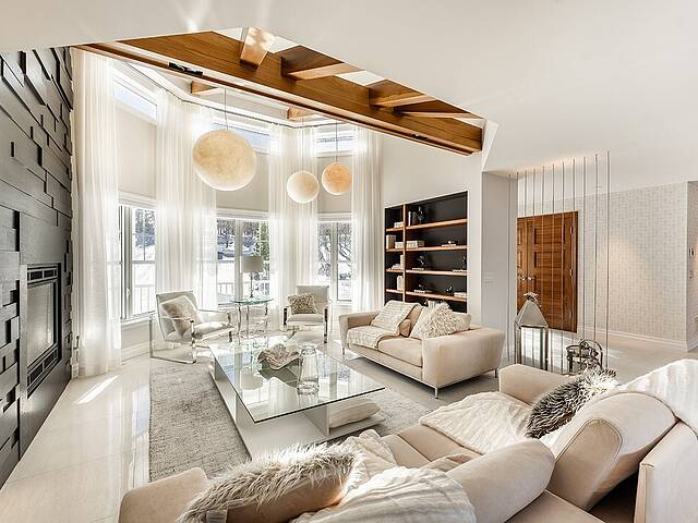 Vivez au bord du Lac des Îles à Entrelacs dans cette propriété riveraine élégante et intime. Elle offre 5 chambres, dont une suite principale face au lac avec foyer au gaz, ainsi qu'un espace polyvalent au rez-de-jardin. Planchers chauffants, matériaux de qualité et aires lumineuses. Terrain de 37 033 pi² avec plage privée, quai et accès au lac navigable, à environ 25 minutes de Saint-Sauveur. Mode de vie quatre saisons entre nautique, golf et ski.
