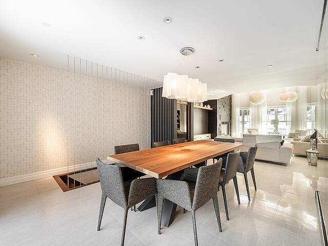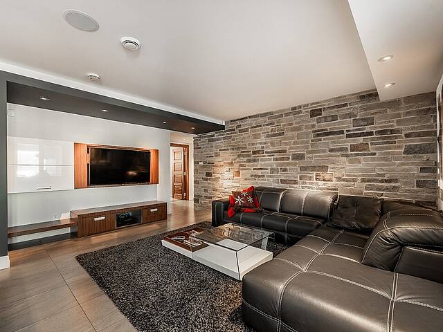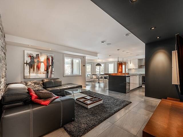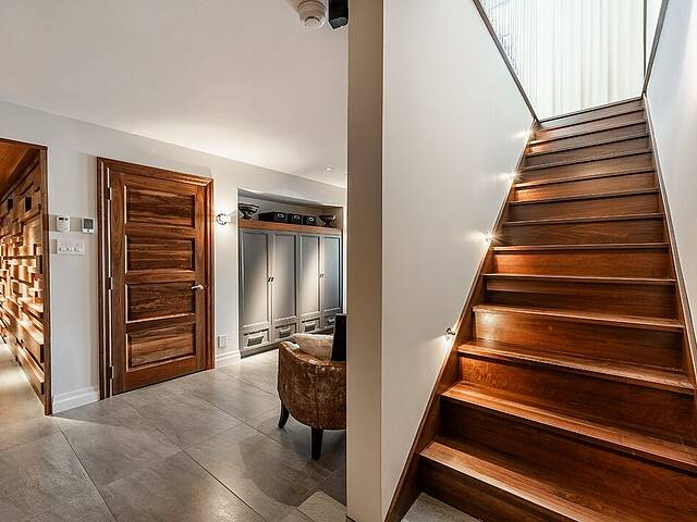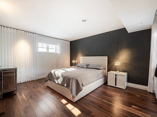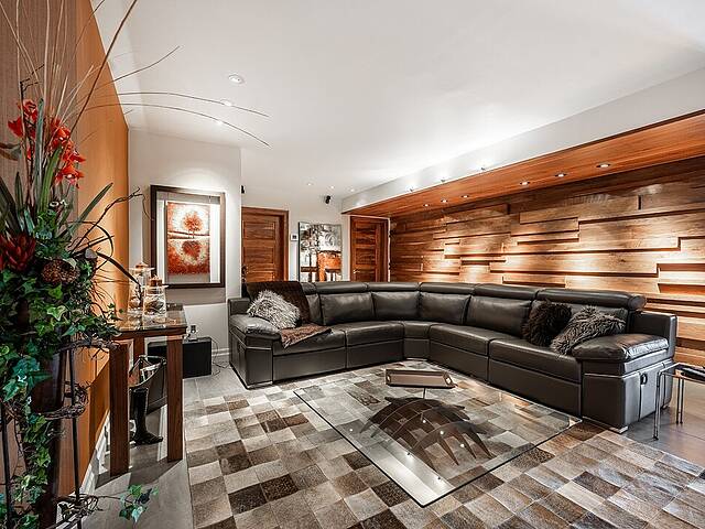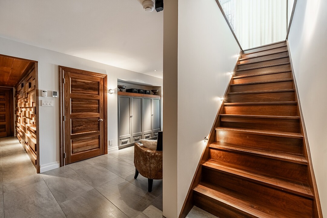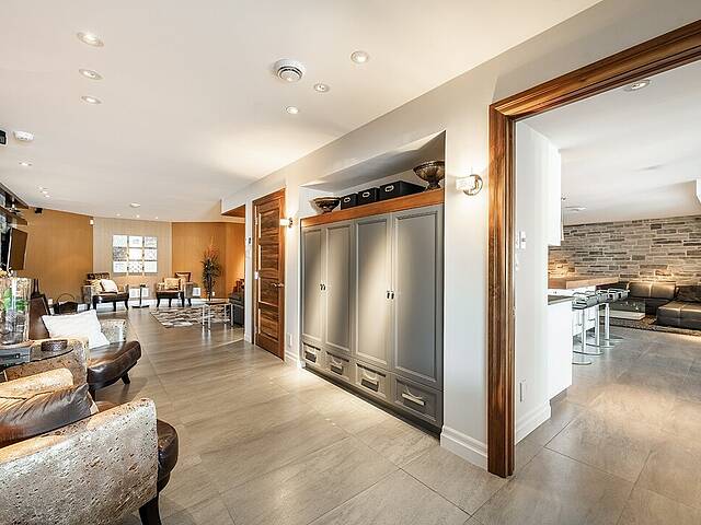 Au rez-de-jardin, un vaste salon avec système de haut-parleurs intégrés crée un environnement immersif et chaleureux. Deux chambres supplémentaires, une cuisine complète, un salon et une salle de bain y sont aménagés. Cet espace peut fonctionner comme une unité indépendante élégante, accueillir la famille élargie ou simplement offrir une extension naturelle de la résidence principale.