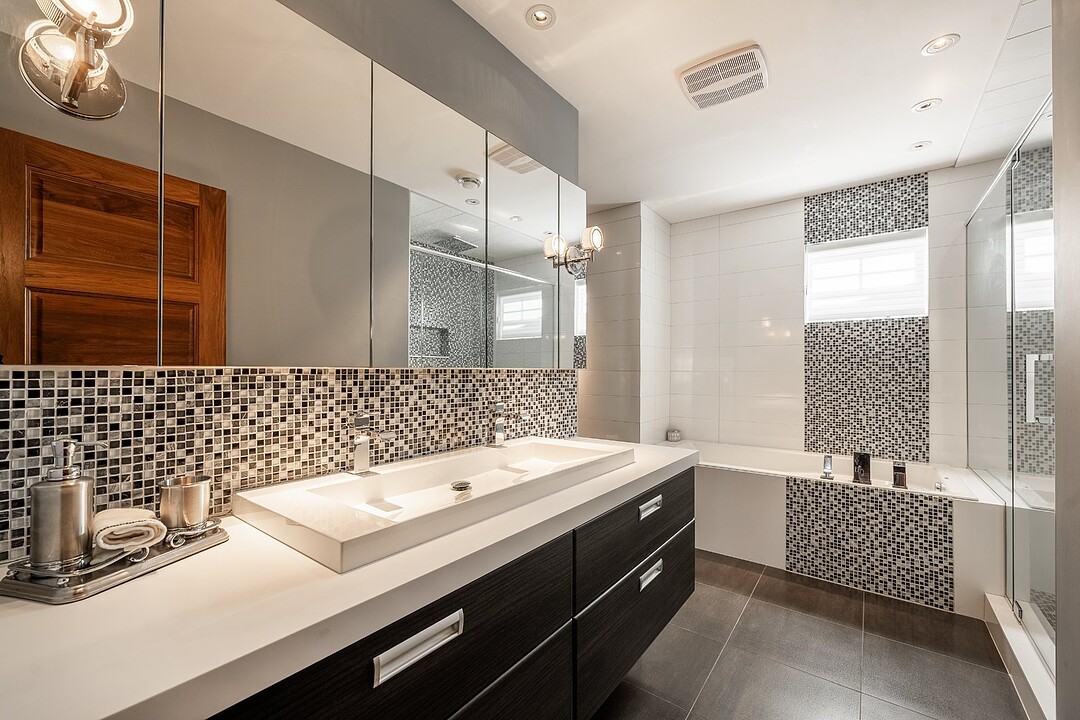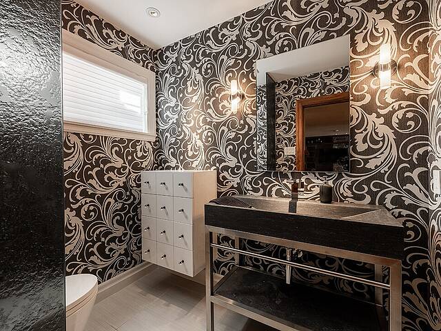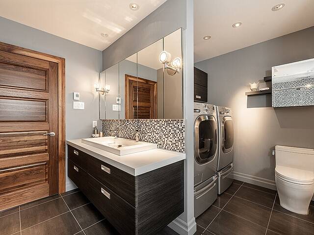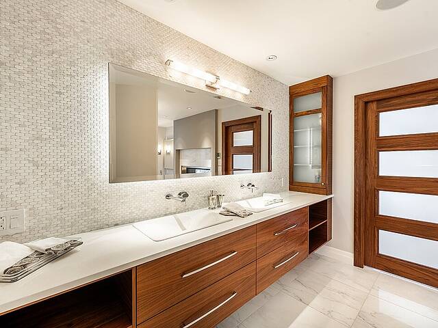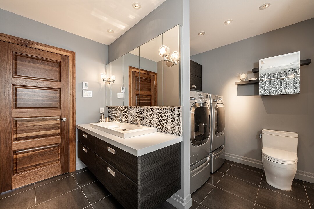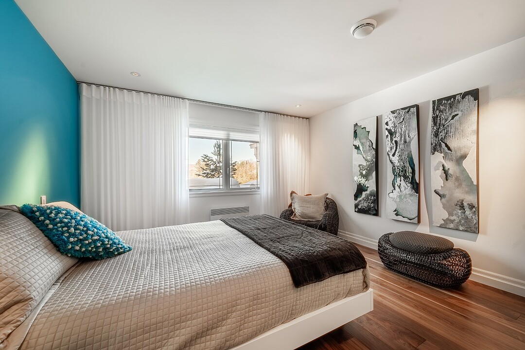 Au rez-de-jardin, un vaste salon avec système de haut-parleurs intégrés crée un environnement immersif et chaleureux. Deux chambres supplémentaires, une cuisine complète, un salon et une salle de bain y sont aménagés. Cet espace peut fonctionner comme une unité indépendante élégante, accueillir la famille élargie ou simplement offrir une extension naturelle de la résidence principale.