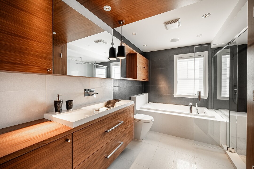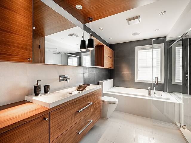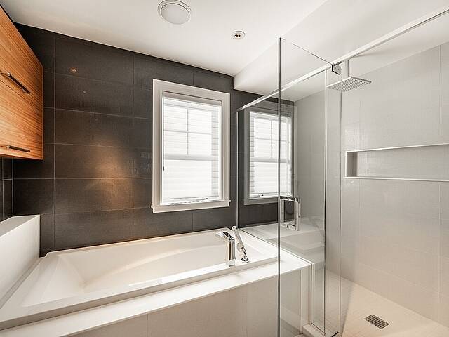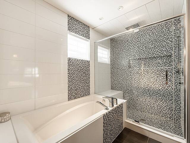 À l'intérieur, les matériaux sont nobles et intemporels. Planchers chauffants dans toute la résidence. Portes pleines en noyer. Stores motorisés dans la majorité des pièces.