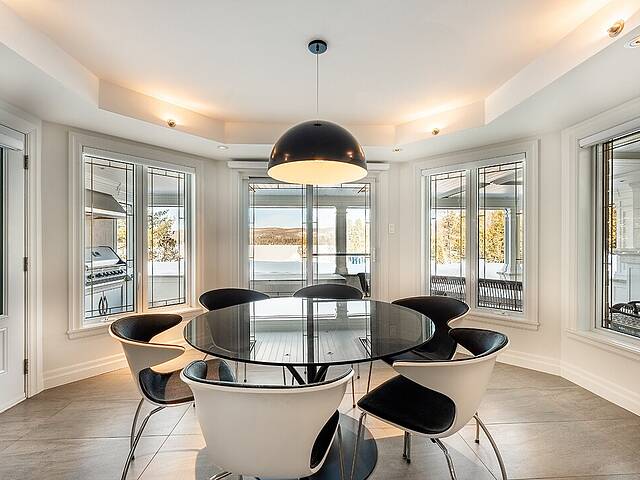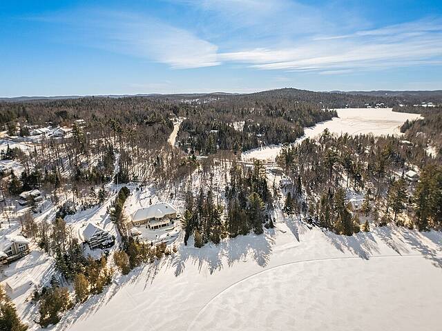 À environ une heure de Montréal et à ± 25 minutes de Saint-Sauveur, l'adresse permet une véritable déconnexion sans compromis sur l'accessibilité. Le Lac des Îles, vaste plan d'eau navigable d'environ 4,8 km², est reconnu pour son calme naturel. Implantée dans une large baie protégée, la propriété bénéficie d'une tranquillité encore plus marquée.