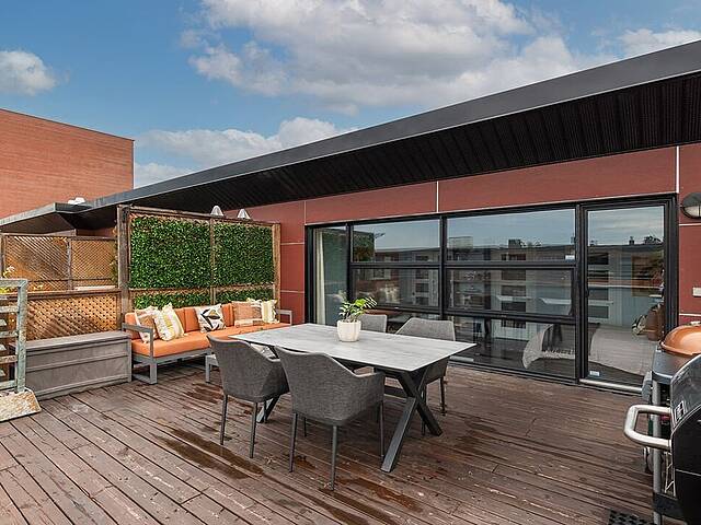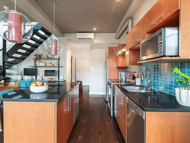 Superbe condo sur deux étages au style industriel, situé dans le Mile-Ex, Petite-Italie. Le premier niveau comprend un espace ouvert regroupant cuisine, salle à manger et salon, ainsi qu'une salle de bain complète. Le plafond de 10 pieds donne une belle sensation d'espace, créant une ambiance aérée. À l'étage, une chambre spacieuse et une salle d'eau donnant accès à une grande terrasse privée. Emplacement de choix à proximité des cafés, restaurants et du marché Jean-Talon. Près du métro Castelneau et à proximité du métro Jean-Talon. Un parfait équilibre entre vie urbaine et confort au quotidien.