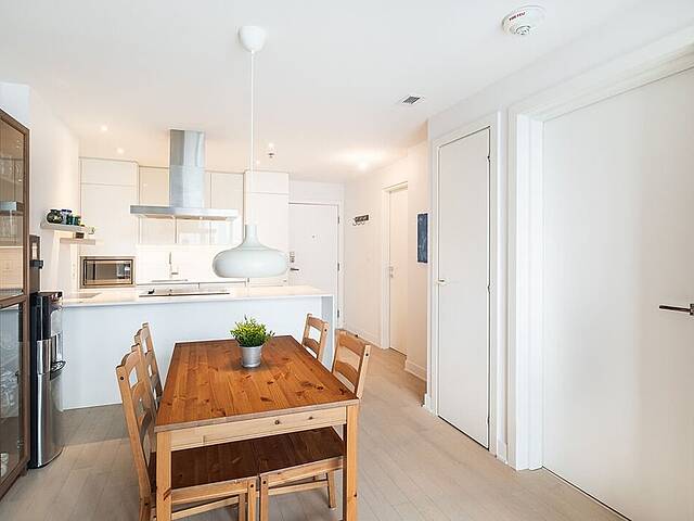 - Aire ouverte lumineuse regroupant salon, salle à manger et cuisine fonctionnelle - Une chambre fermée confortable, avec double penderie - Salle de bain avec douche vitrée - Vue sur la ville - Rangement intérieur inclus
