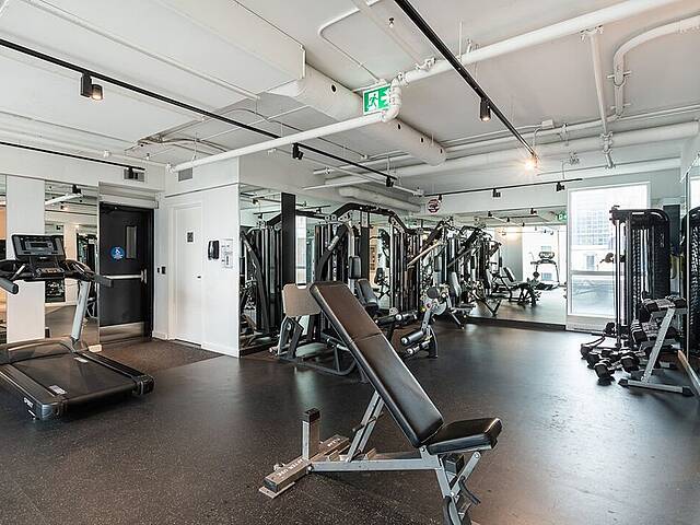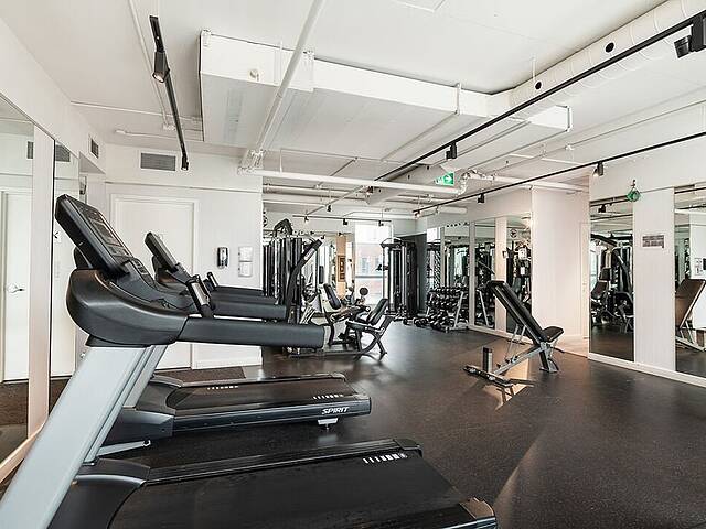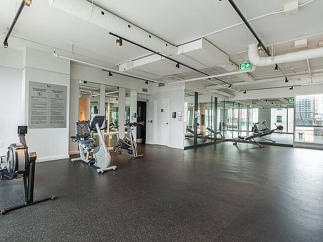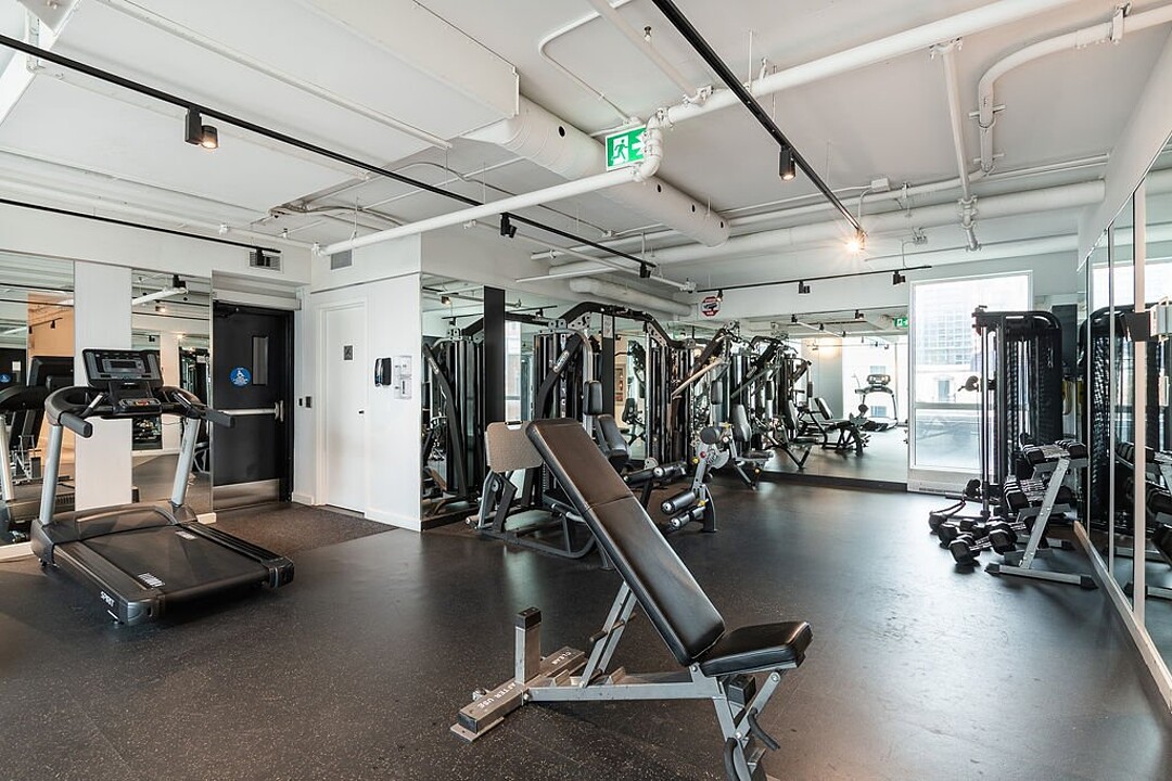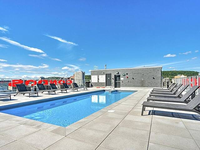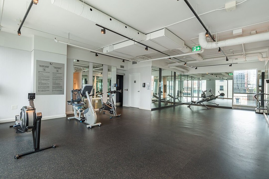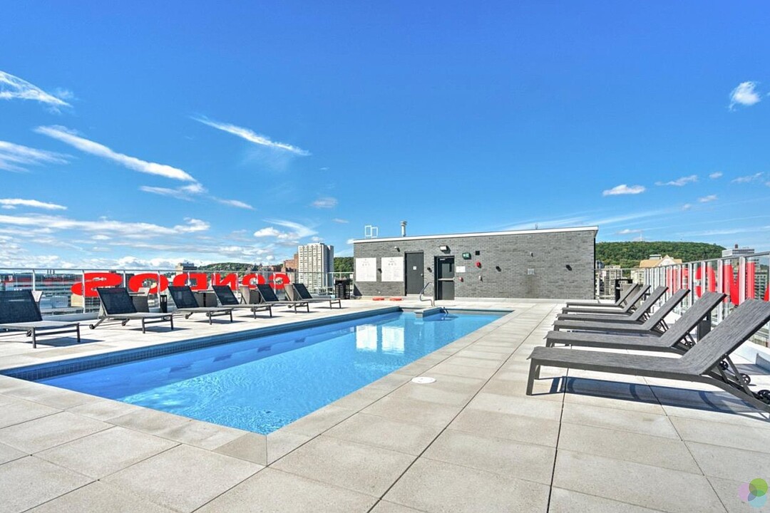 Services et commodités de l'immeuble Le Drummond : - Salle d'entraînement - Piscine extérieure - Terrasse sur le toit - Salle commune - Espace pour vélos au sous-sol - Ascenseurs haute vitesse