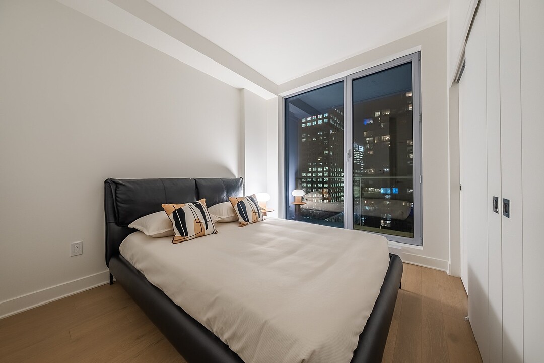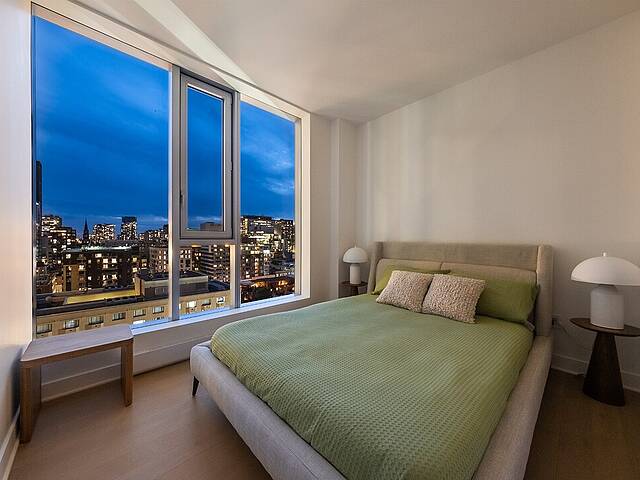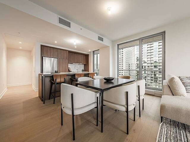 PRIX AJUSTÉ - Magnifique unité de coin, neuve et moderne, située au coeur du centre-ville de Montréal, offrant 2 chambres à coucher, 2 salles de bains et un espace de vie à aire ouverte. Grâce à sa généreuse fenestration, profitez d'une vue imprenable sur la ville. Le Gatsby Condos, un projet neuf au design raffiné, vous invite à découvrir un aménagement contemporain. Inspiré des Années Folles, l'architecture de l'immeuble reflète un style unique et élégant. Savourez ce cadre de vie urbain exceptionnel. L'immeuble propose une gamme complète de services haut de gamme, incluant piscine et salle d'entraînement.