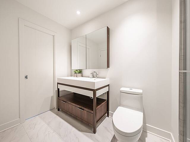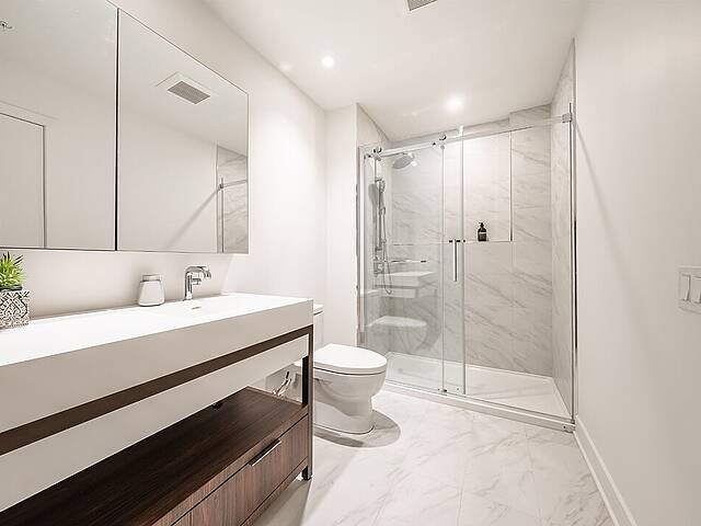 Unités: -Comptoirs et dosseret en Dekton -Hauteur libre de 9' , principalement dans les espaces de vie -Insonorisation acoustique de qualité -Vitrage double énergétique avec unité scellée, low-e et argon -Échangeur d'air inclus dans chaque unité -Climatisation dissimulée avec condenseurs au toit pour les unités de 1 à 3 chambres -Chauffage à plinthes électriques architecturales branchées sur thermostat digital -Préfilage pour la téléphonie, le câble et internet -Appareils d'éclairage inclus: encastrés dans la cuisine, le hall d'entrée et les salles de bains; éclairage fonctionnel pour la buanderie et les walk-ins -Colonnes en béton recouvertes de gypse -Condo livré avec 2 couches de peinture blanche -Balcons privés avec garde-corps vitrés pour la majorité des unités -Serrure sécurisée avec clé Médéco