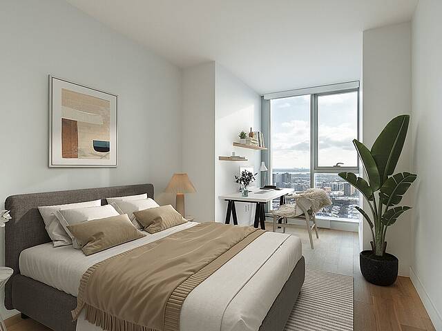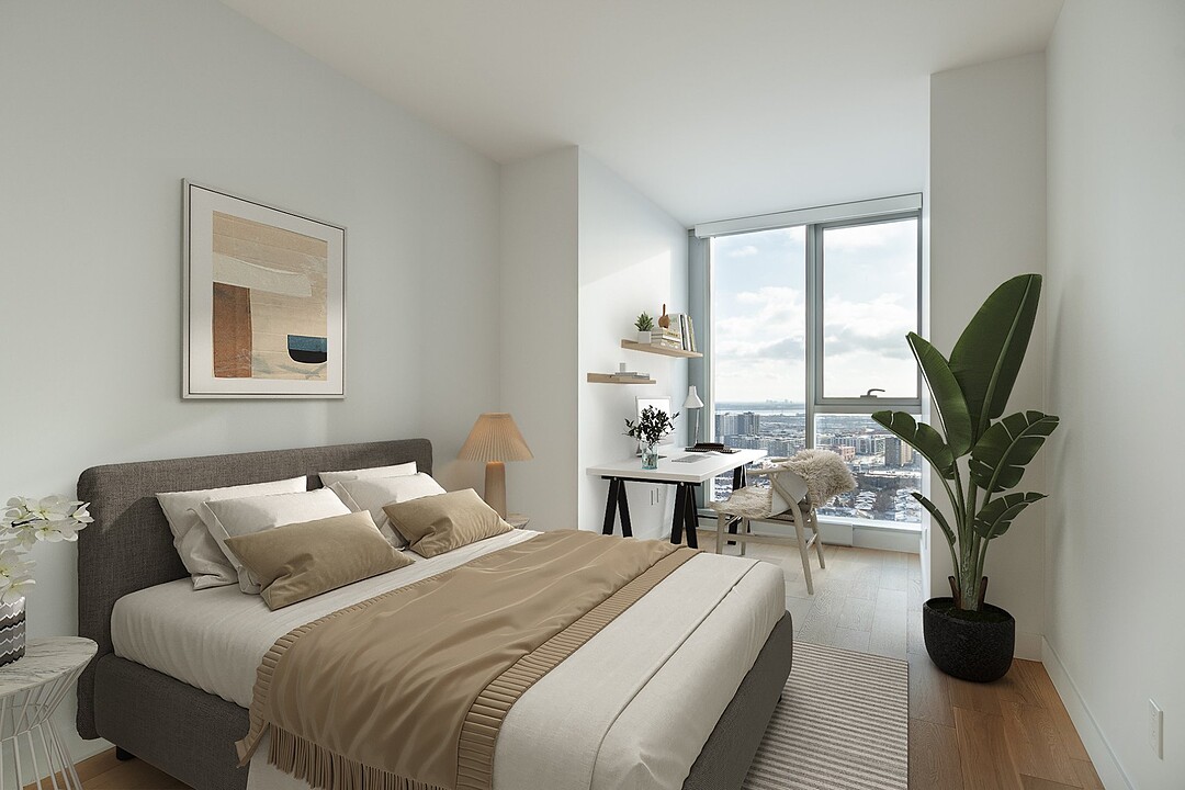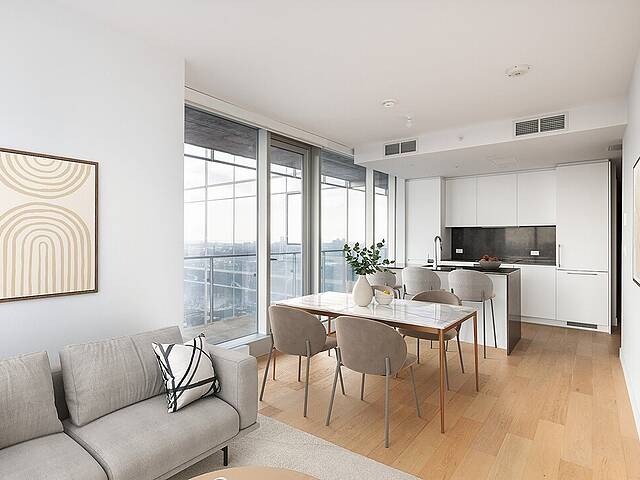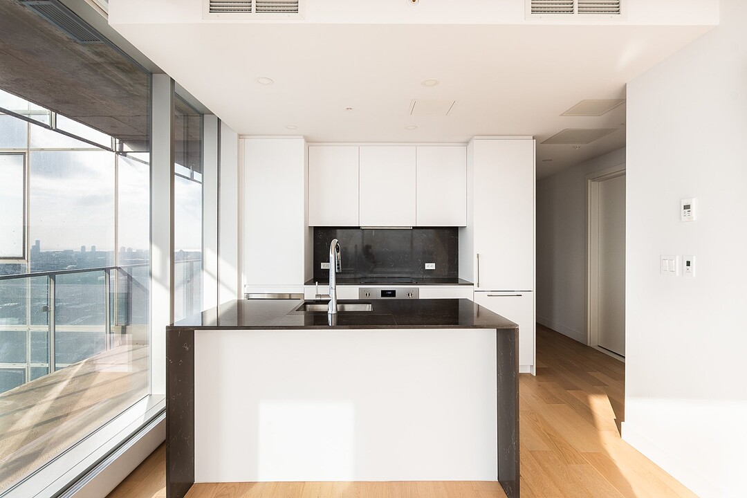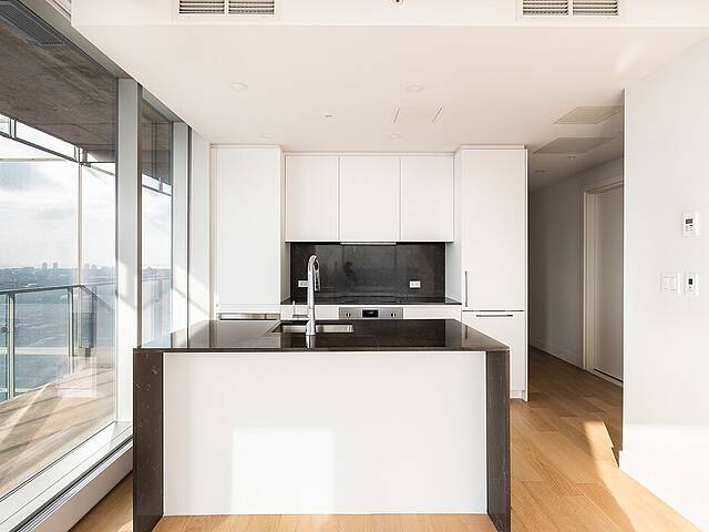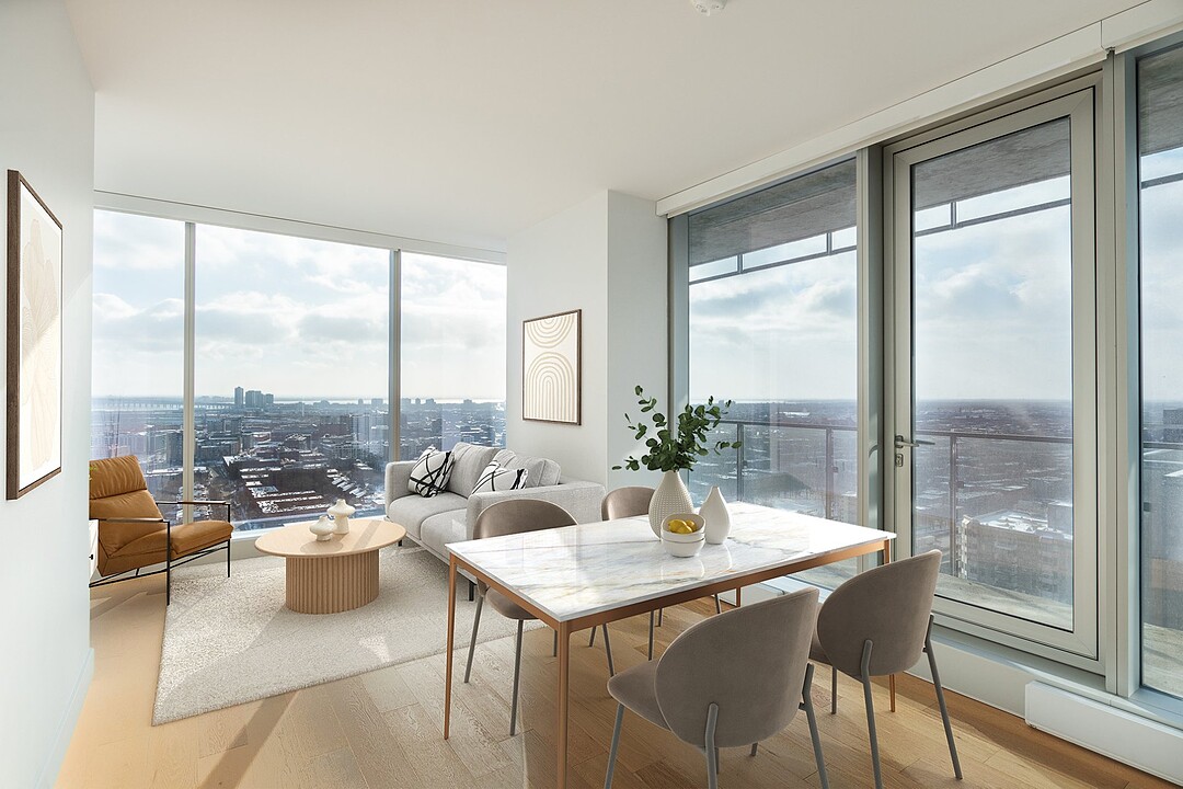 -Spacieuses pièces centrales avec de grandes fenêtres offrant une vue imprenable sur le fleuve et la ville. -Cuisine bien équipée avec un comptoir déjeuner pratique. -Salle à manger conviviale, idéalement située entre la cuisine et le salon pour des moments de partage. -Chambre des maîtres avec un espace dédié pour aménager un bureau ou un coin détente. -Deuxième chambre de belle taille avec des penderies pratiques pour un rangement optimal. -Salle de bain moderne avec plancher chauffant pour un confort maximal. -Vestibule avec une penderie de type « walk-in » et un espace lavage. -Condo neuf, construit avec des matériaux de qualité supérieure pour un cadre de vie raffiné.
