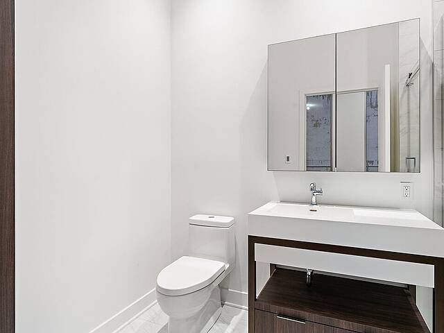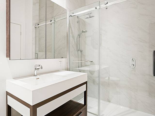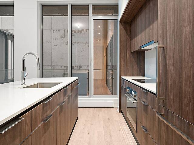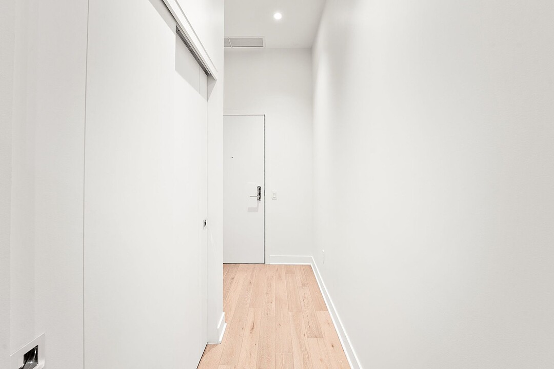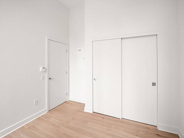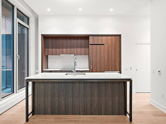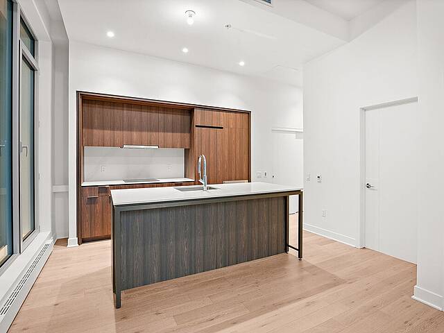 Unités: -Comptoirs et dosseret en porcelaine, Dekton ou quartz -Plafond en béton apparent -Hauteur libre de 9' , principalement dans les espaces de vie -Insonorisation acoustique de qualité -Vitrage double énergétique avec unité scellée, low-e et argon -Échangeur d'air inclus dans chaque unité -Climatisation dissimulée avec condenseurs au toit pour les unités de 1 à 3 chambres -Chauffage à plinthes électriques architecturales branchées sur thermostat digital -Préfilage pour la téléphonie, le câble et internet -Appareils d'éclairage inclus: encastrés dans la cuisine, le hall d'entrée et les salles de bains; éclairage fonctionnel pour la buanderie et les walk-ins -Colonnes en béton recouvertes de gypse -Condo livré avec 2 couches de peinture blanche -Balcons privés avec garde-corps vitrés pour la majorité des unités -Serrure sécurisée avec clé Médéco