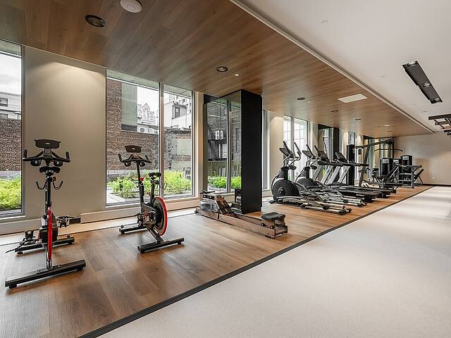 2e Étage -Salle d'entraînement de 1500 pi2 équipée d'appareils de conditionnement physiques -Espace pour Yoga/étirements -Terrasse florale aménagée et espace détente, conçue par Lemay Architecte paysagistes