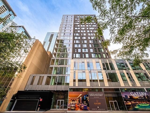 *PRIX AJUSTÉ* - Condo de coin neuf et moderne situé au coeur du centre-ville de Montréal, offrant une chambre à coucher, une salle de bain, un espace de vie à aire ouverte et un vaste balcon privé. Le Gatsby Condos, un projet au design raffiné, propose un aménagement contemporain et fonctionnel. Inspiré des Années Folles, l'architecture de l'immeuble reflète un style unique et élégant. Profitez d'un emplacement privilégié à proximité des meilleurs restaurants, cafés, boutiques et attractions culturelles du centre-ville de Montréal. Un parfait investissement!