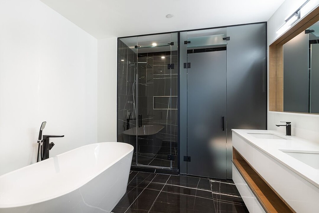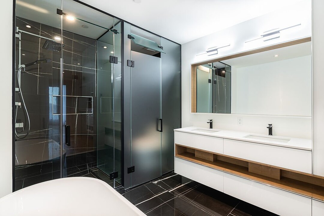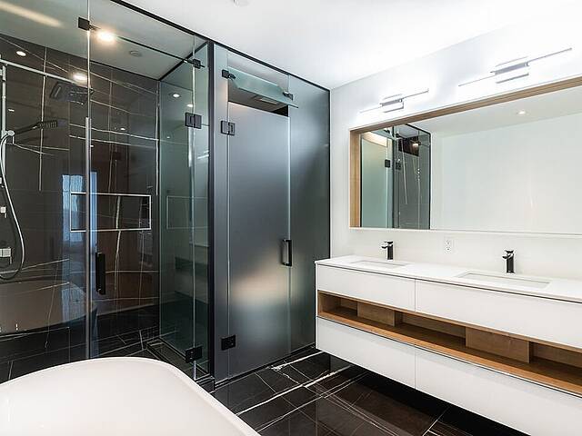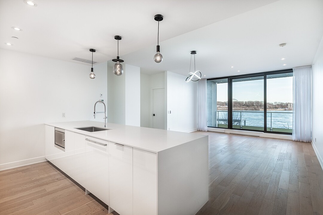 -Cuisine moderne, comptoirs en quartz, îlot central avec robinetterie haut de gamme -Salon avec fenêtres du sol au plafond, avec accès au balcon -Chambre principale avec grande pièce-penderie et salle de bain attenante, dotée d'une grande douche vitrée et d'un bain autoportant. Le plancher est chauffant. -Deuxième chambre de bonnes dimensions pouvant servir de bureau -Deuxième salle de bain munie d'une douche et plancher chauffant -Une salle d'eau pour vos invités -Électroménagers de qualité et finitions de haute qualité -Vue époustouflante sur le fleuve Saint-Laurent -Balcon -Salle de lavage -Sortie de gaz naturel au balcon (BBQ) -Un espace de stationnement intérieur -Un espace de rangement