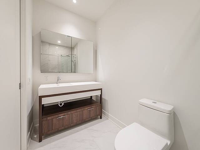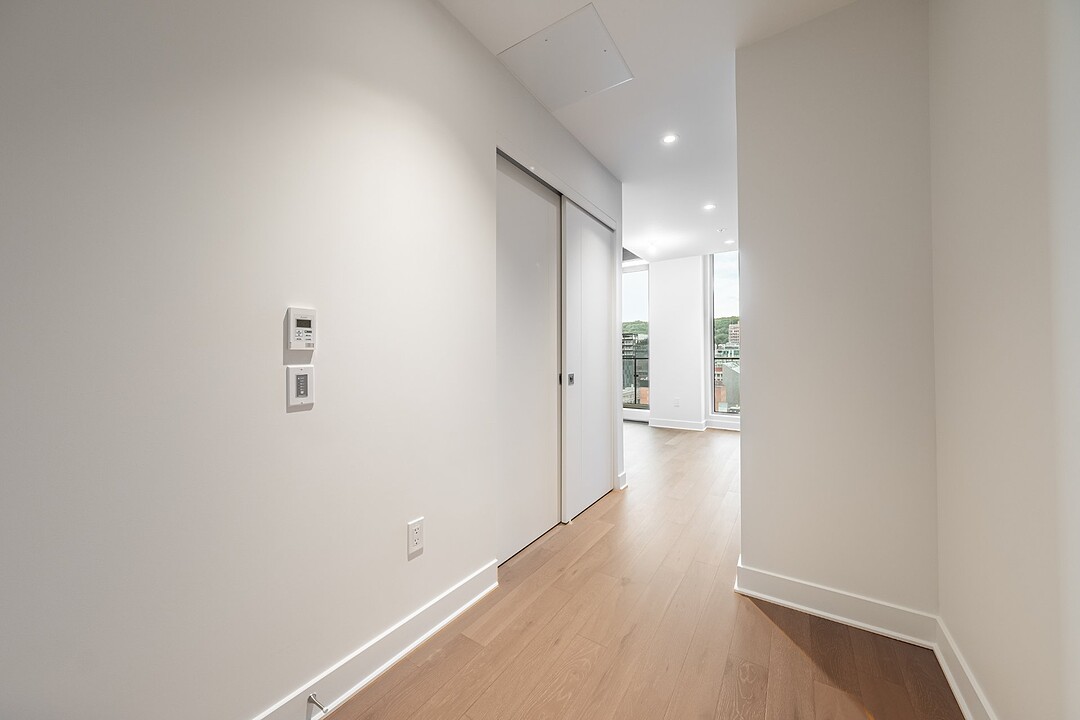 -Comptoirs et dosseret en porcelaine, Dekton ou quartz -Plafond en béton apparent -Hauteur libre de 9' , principalement dans les espaces de vie -Insonorisation acoustique de qualité -Vitrage double énergétique avec unité scellée, low-e et argon -Échangeur d'air inclus dans chaque unité -Climatisation dissimulée avec condenseurs au toit pour les unités de 1 à 3 chambres -Chauffage à plinthes électriques architecturales branchées sur thermostat digital -Préfilage pour la téléphonie, le câble et internet -Appareils d'éclairage inclus: encastrés dans la cuisine, le hall d'entrée et les salles de bains; éclairage fonctionnel pour la buanderie et les walk-ins -Colonnes en béton recouvertes de gypse -Condo livré avec 2 couches de peinture blanche -Balcons privés avec garde-corps vitrés pour la majorité des unités -Serrure sécurisée avec clé Médéco