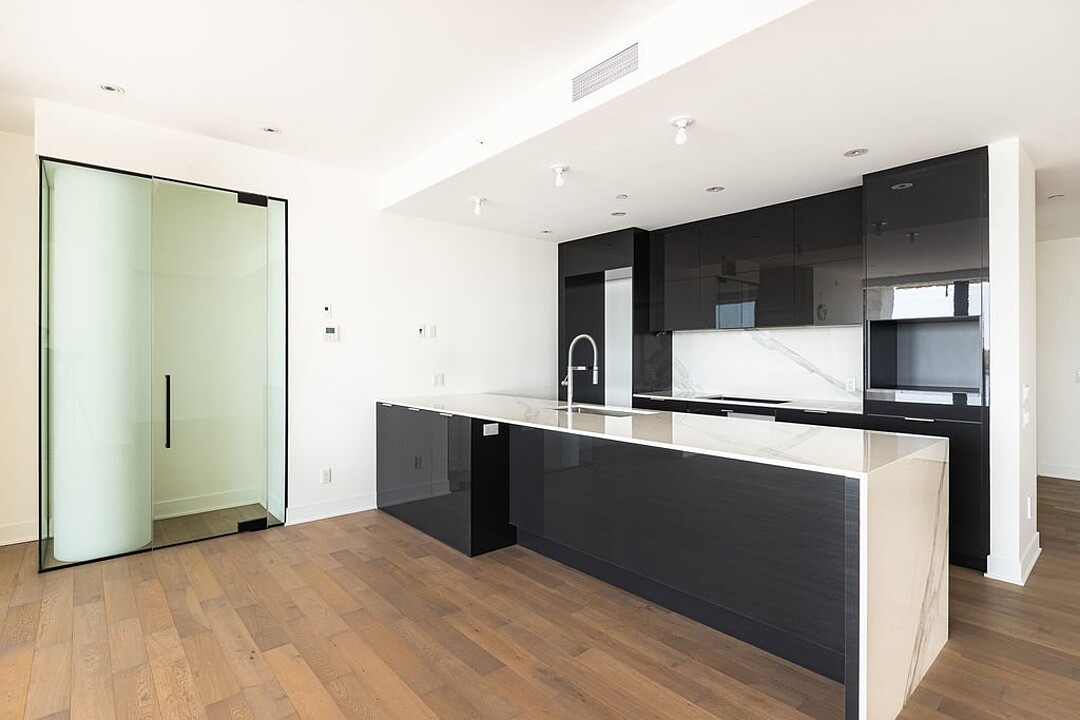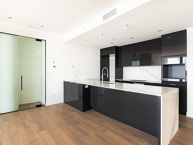 - Cuisine moderne, comptoirs en quartz, îlot central avec robinetterie haut de gamme