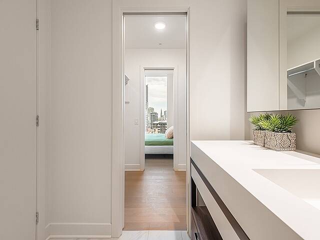 Unités: -Comptoirs et dosseret en Dekton -Hauteur libre de 9' , principalement dans les espaces de vie -Insonorisation acoustique de qualité -Vitrage double énergétique avec unité scellée, low-e et argon -Échangeur d'air inclus dans chaque unité -Climatisation dissimulée avec condenseurs au toit pour les unités de 1 à 3 chambres -Chauffage à plinthes électriques architecturales branchées sur thermostat digital -Préfilage pour la téléphonie, le câble et internet -Appareils d'éclairage inclus: encastrés dans la cuisine, le hall d'entrée et les salles de bains; éclairage fonctionnel pour la buanderie et les walk-ins -Colonnes en béton recouvertes de gypse -Condo livré avec 2 couches de peinture blanche -Balcons privés avec garde-corps vitrés pour la majorité des unités -Serrure sécurisée avec clé Médéco
