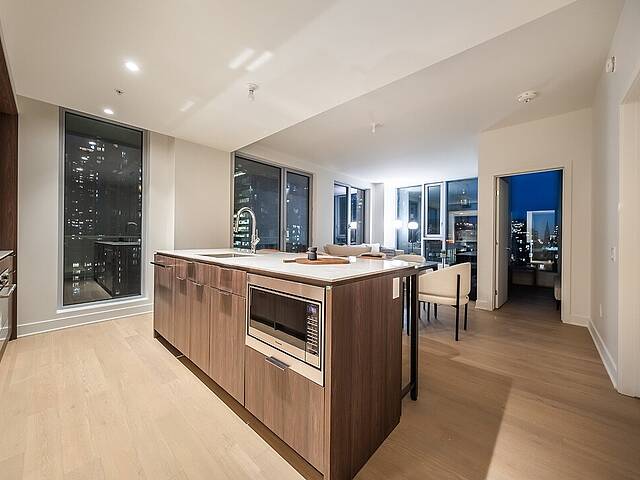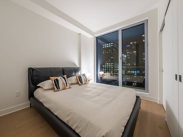 PRIX AJUSTÉ - Magnifique unité de coin, neuve et moderne, située au coeur du centre-ville de Montréal, offrant 2 chambres à coucher, 2 salles de bains et un espace de vie à aire ouverte. Grâce à sa généreuse fenestration, profitez d'une vue imprenable sur la ville. Le Gatsby Condos, un projet neuf au design raffiné, vous invite à découvrir un aménagement contemporain. Inspiré des Années Folles, l'architecture de l'immeuble reflète un style unique et élégant. Savourez ce cadre de vie urbain exceptionnel. L'immeuble propose une gamme complète de services haut de gamme, incluant piscine et salle d'entraînement.