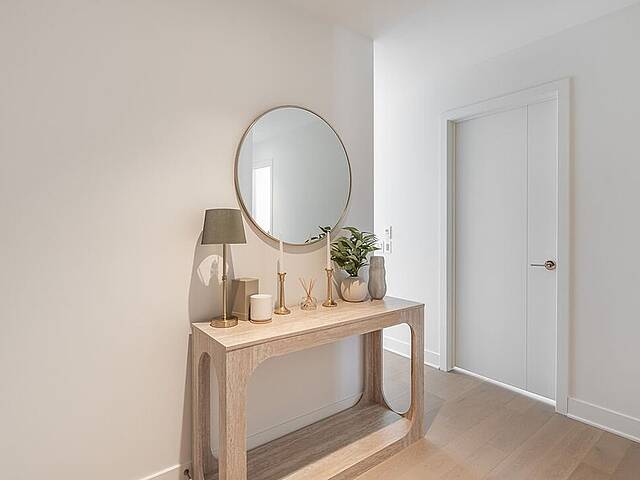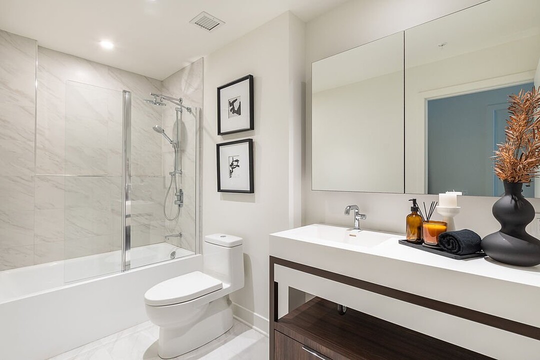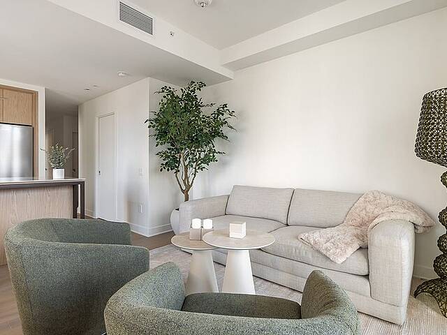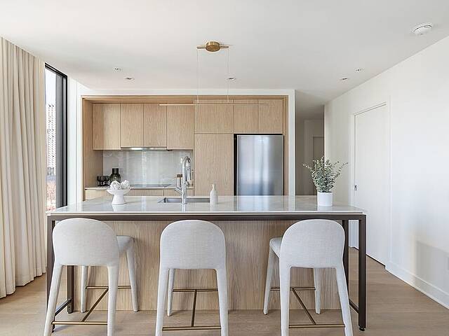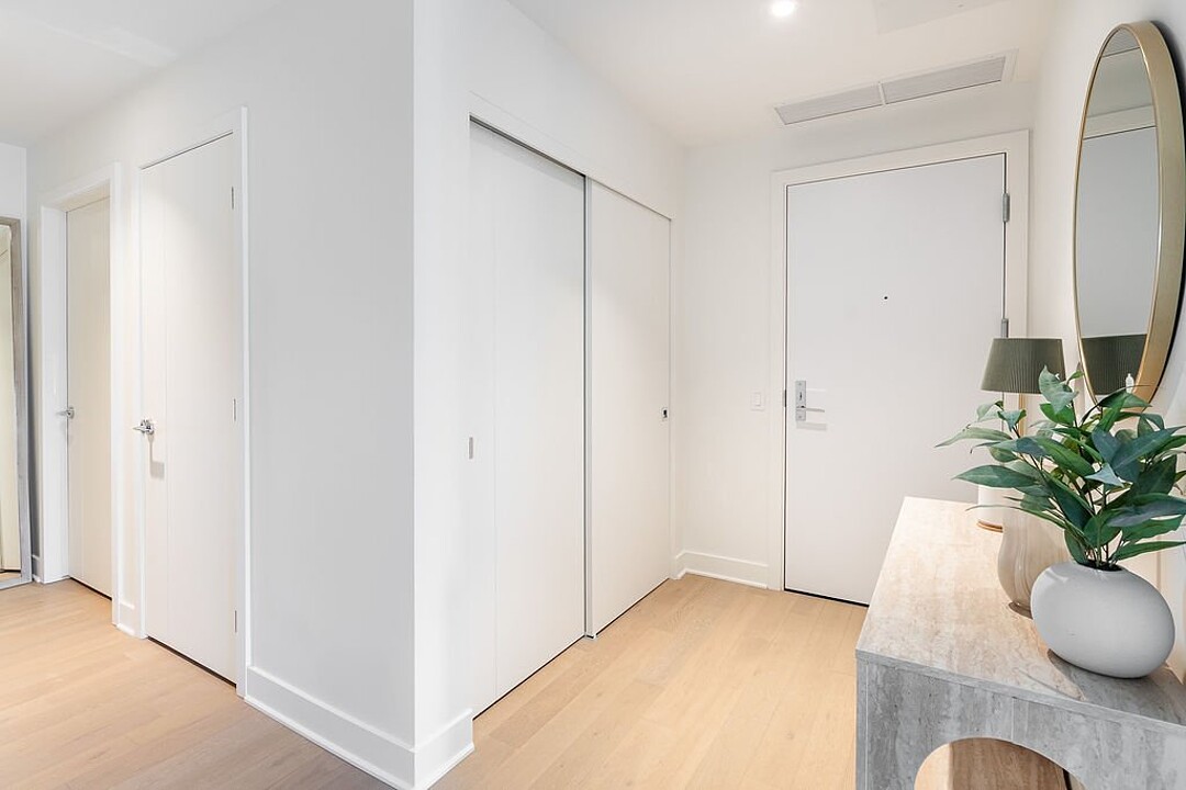 Unités: -Comptoirs et dosseret en Dekton -Hauteur libre de 9' , principalement dans les espaces de vie -Insonorisation acoustique de qualité -Vitrage double énergétique avec unité scellée, low-e et argon -Échangeur d'air inclus dans chaque unité -Climatisation dissimulée avec condenseurs au toit pour les unités de 1 à 3 chambres -Chauffage à plinthes électriques architecturales branchées sur thermostat digital -Préfilage pour la téléphonie, le câble et internet -Appareils d'éclairage inclus: encastrés dans la cuisine, le hall d'entrée et les salles de bains; éclairage fonctionnel pour la buanderie et les walk-ins -Colonnes en béton recouvertes de gypse -Condo livré avec 2 couches de peinture blanche -Balcons privés avec garde-corps vitrés pour la majorité des unités -Serrure sécurisée avec clé Médéco