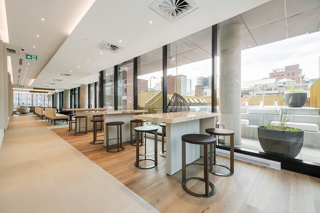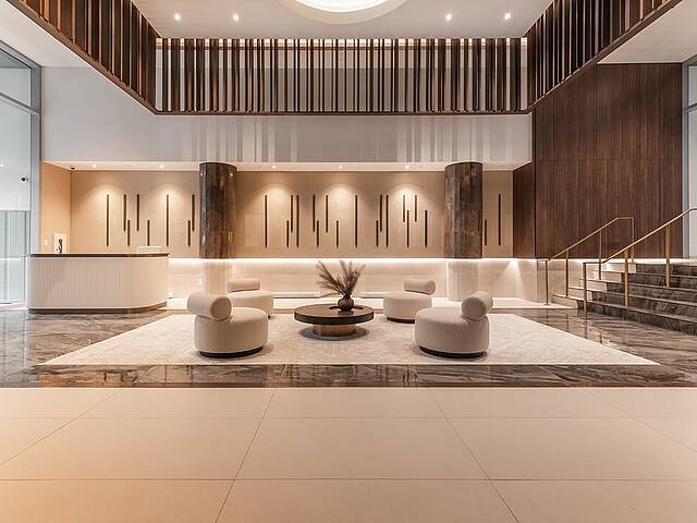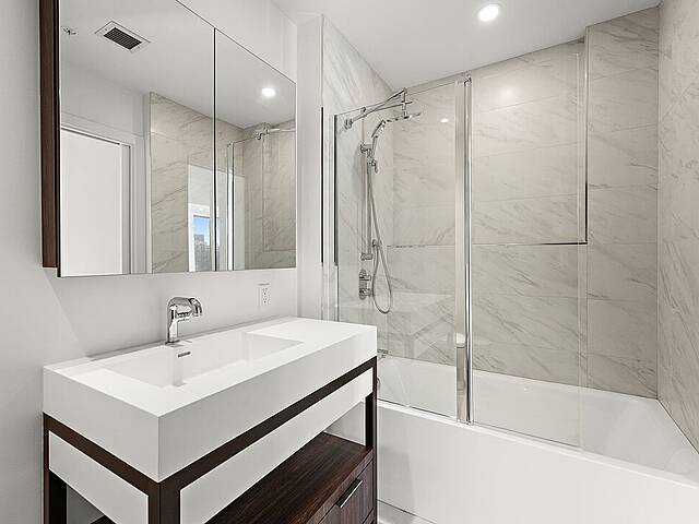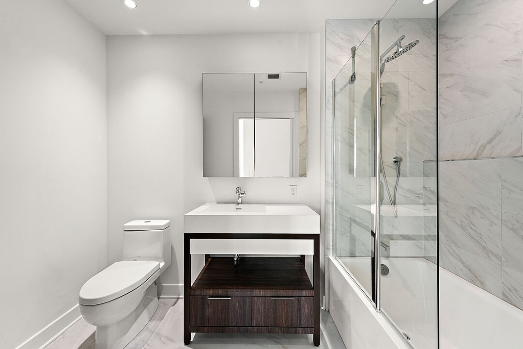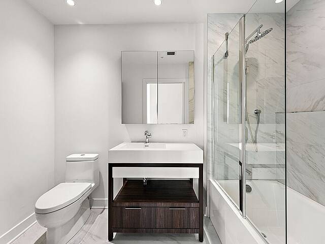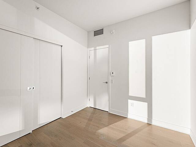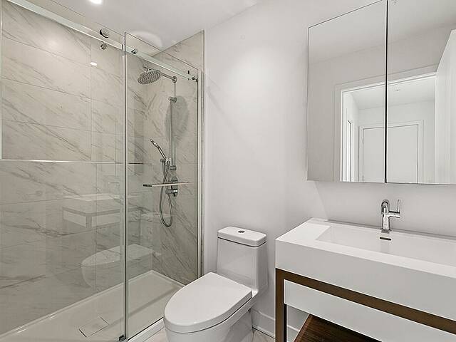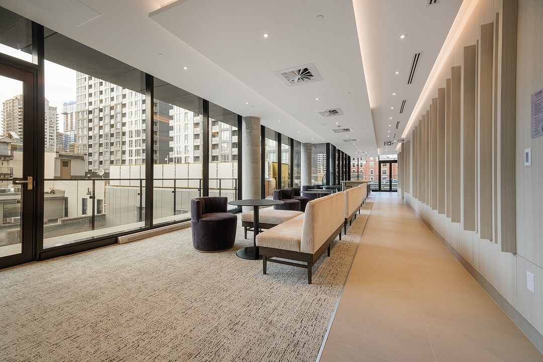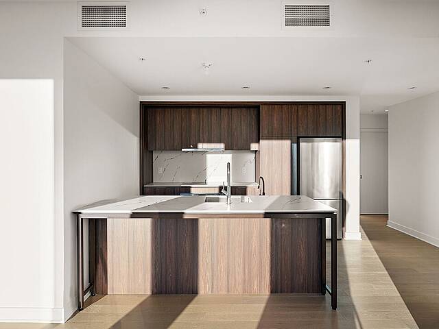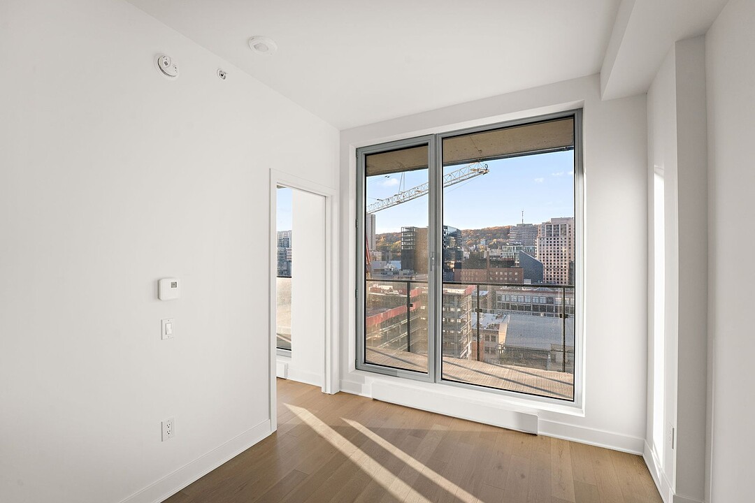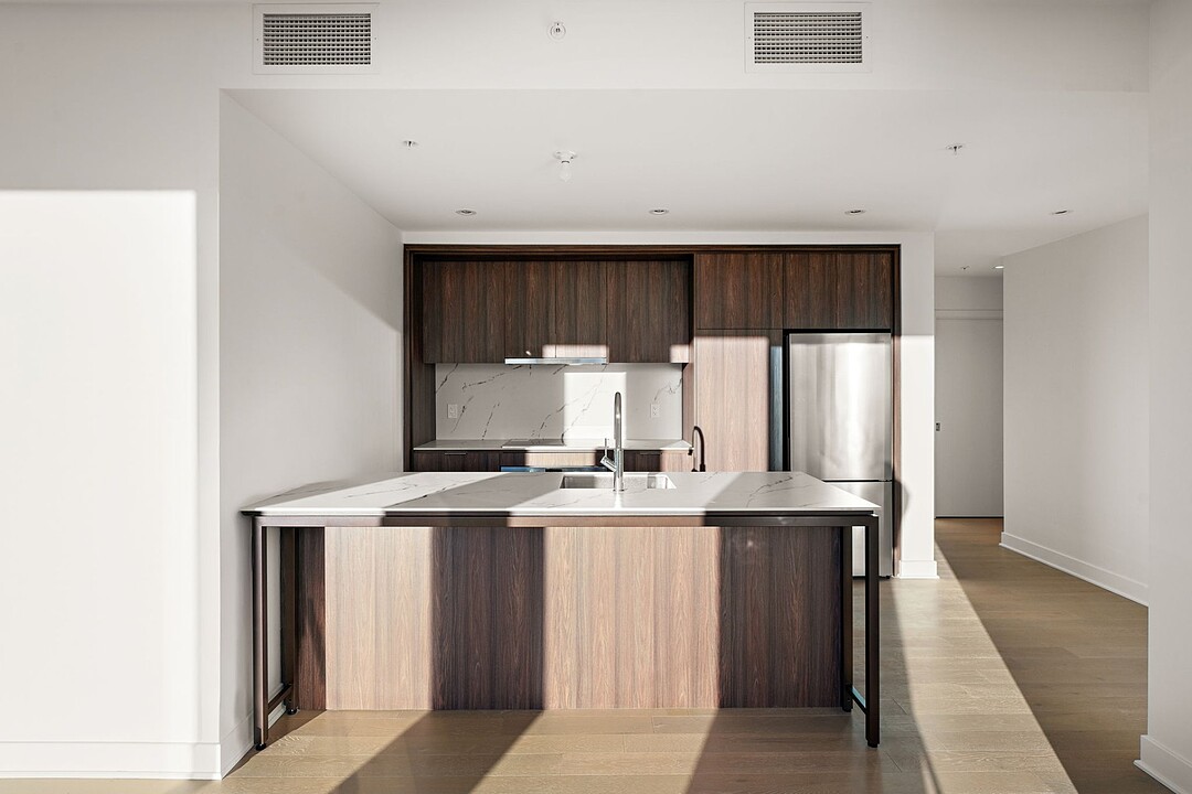 Unités: -Comptoirs et dosseret en porcelaine, Dekton ou quartz -Plafond en béton apparent -Hauteur libre de 9' , principalement dans les espaces de vie -Insonorisation acoustique de qualité -Vitrage double énergétique avec unité scellée, low-e et argon -Échangeur d'air inclus dans chaque unité -Climatisation dissimulée avec condenseurs au toit pour les unités de 1 à 3 chambres -Chauffage à plinthes électriques architecturales branchées sur thermostat digital -Préfilage pour la téléphonie, le câble et internet -Appareils d'éclairage inclus: encastrés dans la cuisine, le hall d'entrée et les salles de bains; éclairage fonctionnel pour la buanderie et les walk-ins -Colonnes en béton recouvertes de gypse -Condo livré avec 2 couches de peinture blanche -Balcons privés avec garde-corps vitrés pour la majorité des unités -Serrure sécurisée avec clé Médéco