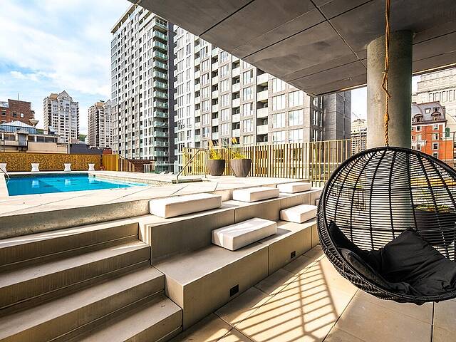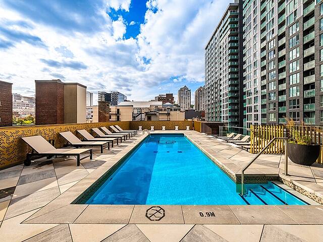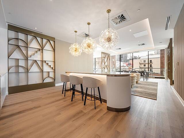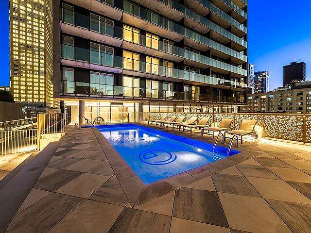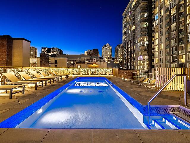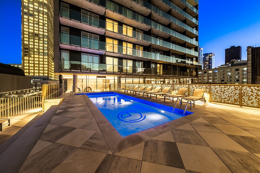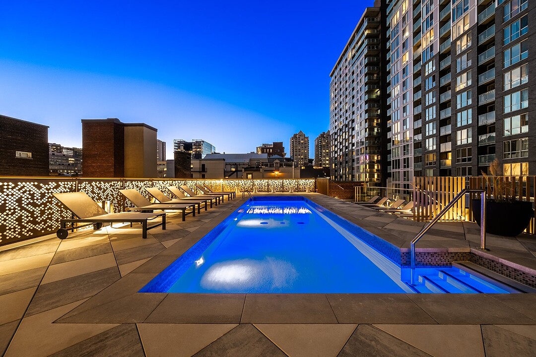 4e Étage -Terrasse aménagée avec piscine extérieure chauffée -Chalet urbain de 3 000 Pi2 avec foyer au gaz et espace bar -Salon de jeu avec table de billard, poker et plus