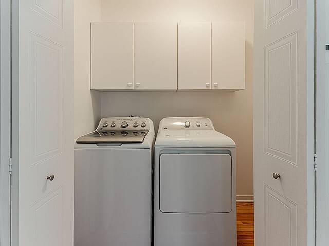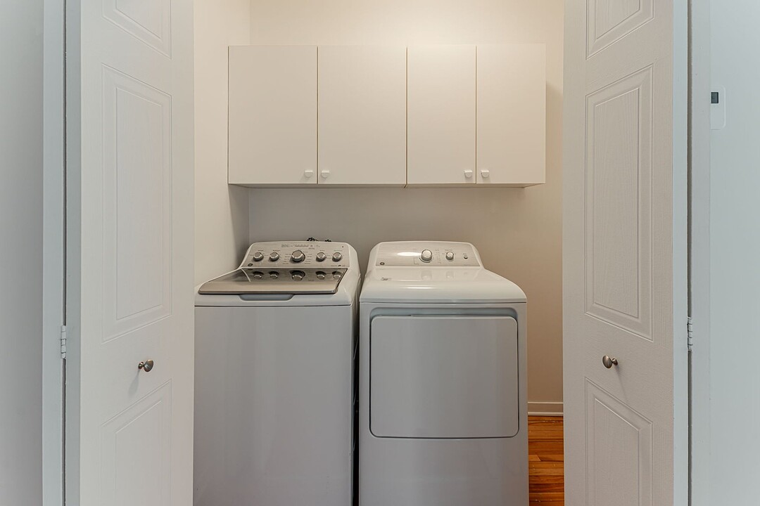 -Kitchen with plenty of storage and balcony access -Cozy living room with adjacent storage -Two spacious bedrooms -Hardwood and ceramic floors -Laundry area with storage cabinets