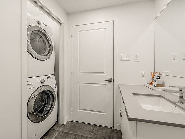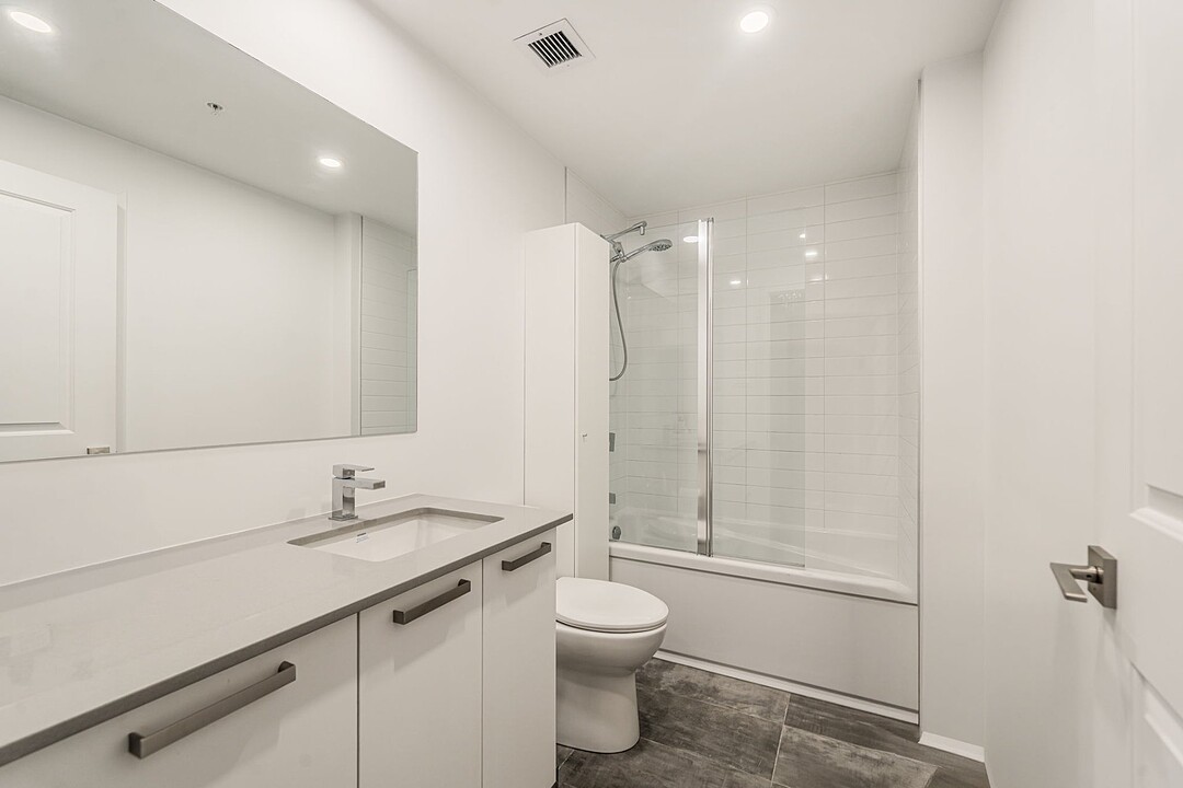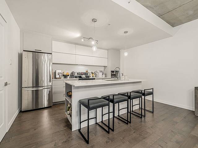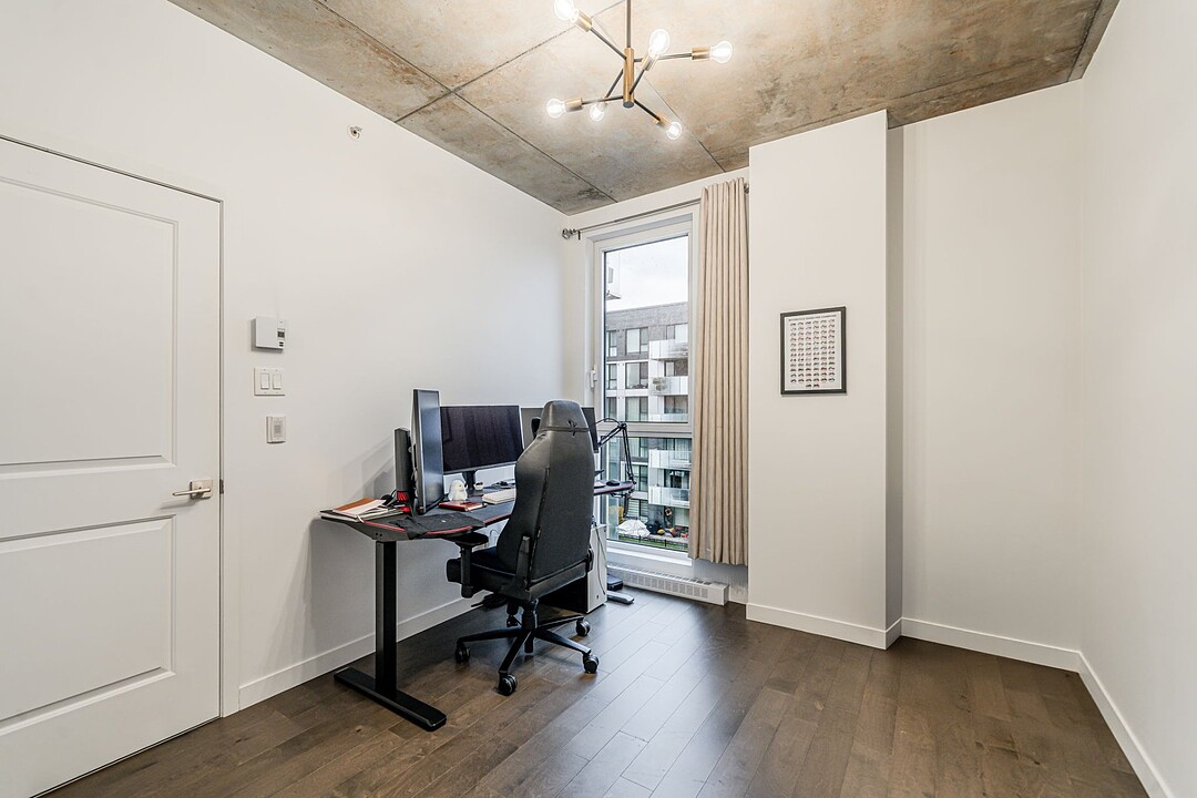 Its features: -Two (2) bedrooms of good size -Two (2) bathrooms -Kitchen with floor to ceiling cabinets, quartz countertop -Natural light with floor to ceiling with E-Star windows -9 foot-high concrete ceilings -Environmentally friendly and non-toxic materials -Optimum acoustics and constant ambient temperature -Secure garage and electric car chargers -Storage space