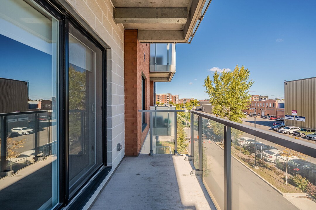 Unit: - Bright open-concept dining and living room with exposed concrete ceilings - Kitchen with island, optimized space, and stainless steel appliances - Spacious primary bedroom - Closet in the entryway - Washer and dryer hidden in a closet - Private balcony - Included services: high-speed Wi-Fi and all electricity, heating, and air-conditioning costs are included in the rent - Window blinds included - Bike storage space - Indoor parking ($175/month) with access to charging stations