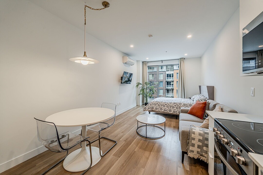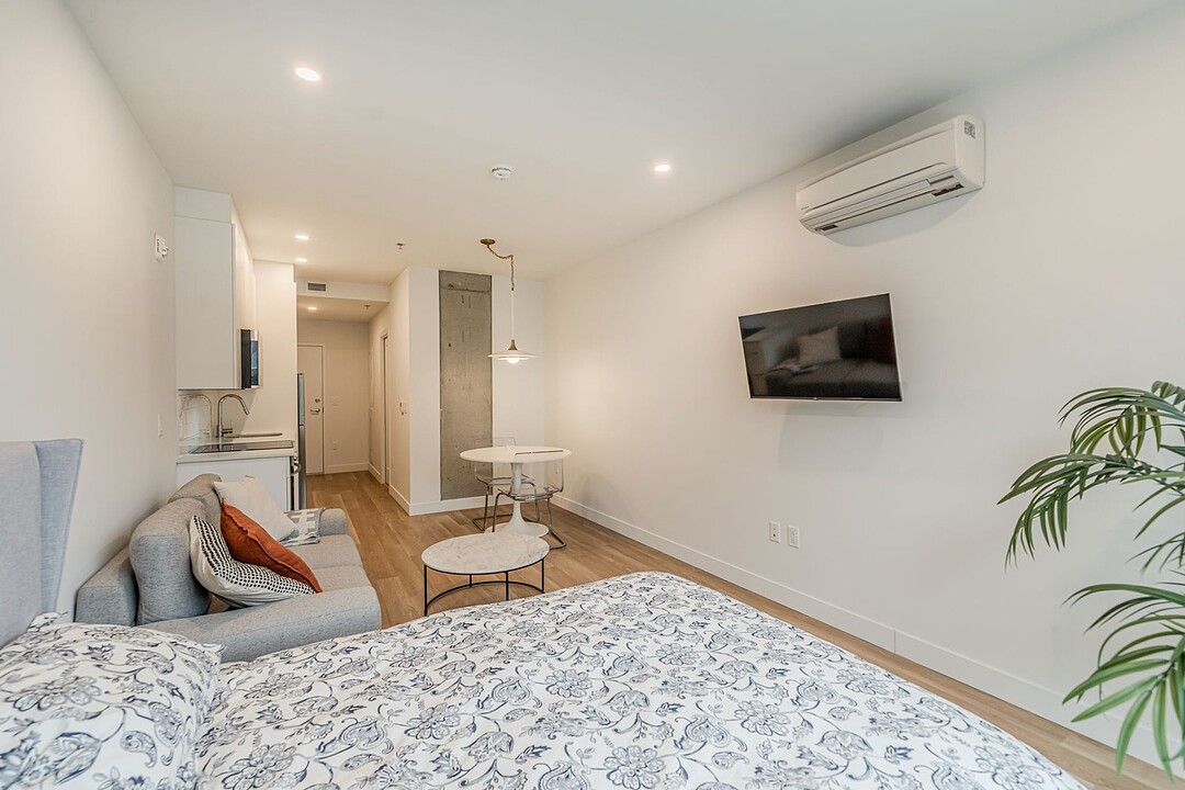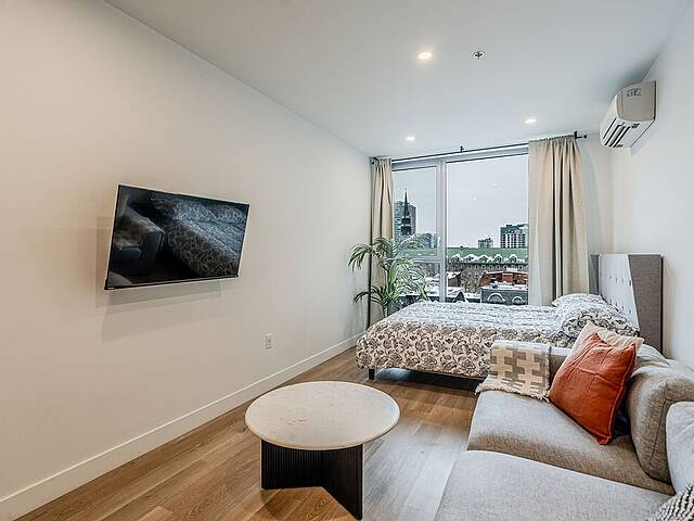 Brand-new studio for rent in Downtown Montréal. Perfect pied-à-terre for a professional or a student. Including five appliances and all services, this loft offers all the amenities required for everyday living. Located just steps from Concordia and McGill universities as well as from the main attractions of downtown Montréal. Lucien-L'Allier metro station is a 5-minute walk away. The Bishop Embassy building offers two elevators, a fitness room, a co-working space, a rooftop terrace and secured access. Experience downtown living at its best, where everything is within walking distance.(Multiple units available)