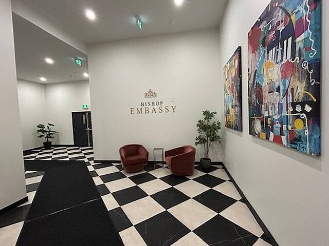 The Bishop Embassy building offers: - Rooftop terrace with a view - Two elevators - Fitness room - Co-working space - Secured access
