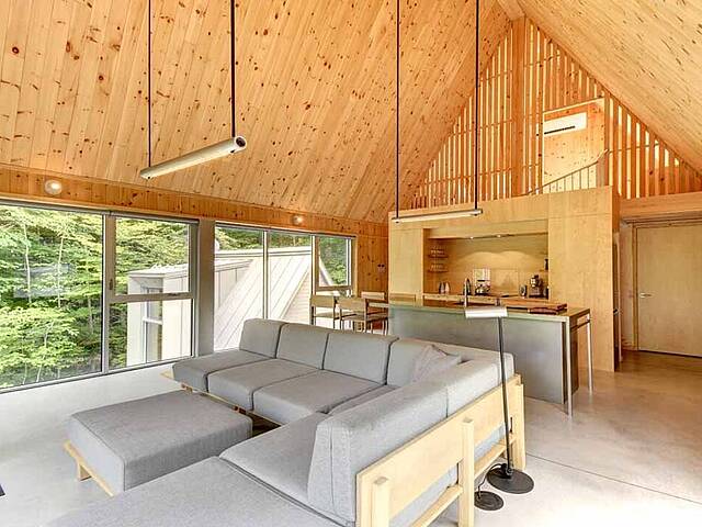 Architectural project by Appareil Architecture -- discover the many features of this magnificent property nestled in the heart of nature in Chertsey, Lanaudière: