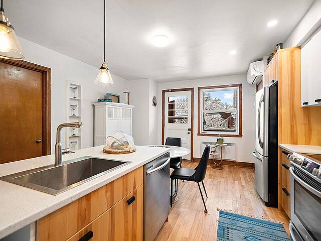 Property highlights: - Two large, bright units with spacious rooms - Two updated kitchens with a modern design - Enlarged and fully renovated bathroom - Double living rooms and large bedrooms - Windows replaced in 2020 - Roof redone in 2015 - Heated garage renovated in 2024