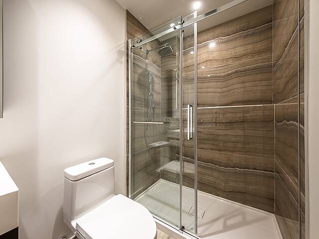 Units: -Porcelain, Dekton, or quartz countertops and backsplash -Exposed concrete ceilings -9-foot ceiling height, primarily in living spaces -Quality acoustic soundproofing -Double-energy glazed windows with sealed units, low-e, and argon -Air exchanger included in each unit -Concealed air conditioning with roof condensers for 1 to 3-bedroom units -Architectural electric baseboard heating connected to digital thermostat -Pre-wiring for telephone, cable, and internet -Included lighting fixtures: recessed in the kitchen, entrance hall and bathrooms; functional lighting for laundry rooms and walk-ins -Gypsum-covered concrete columns -Condo delivered with 2 coats of white paint -Private balconies with glass railings for most units -Secure lock with Medeco key